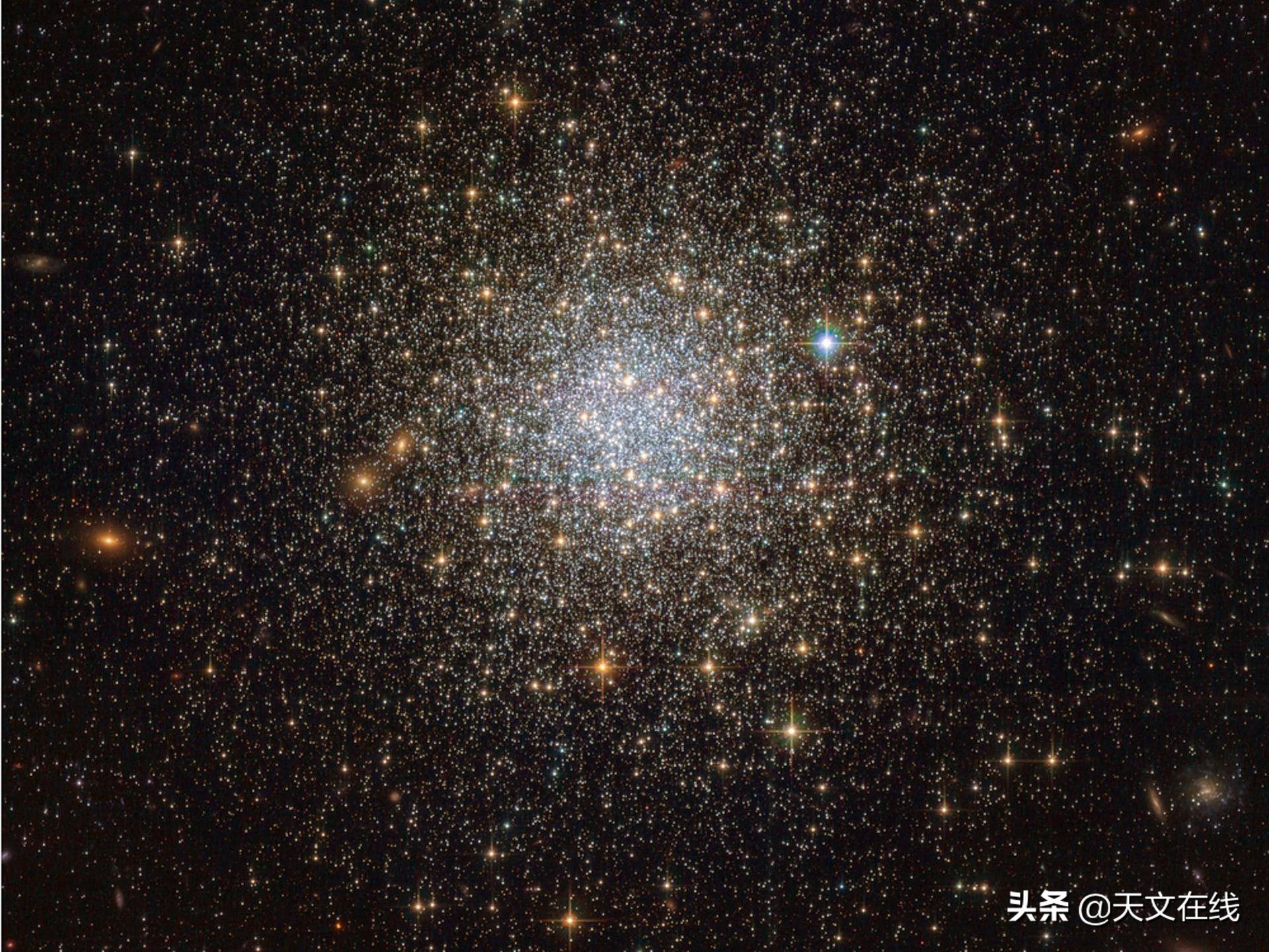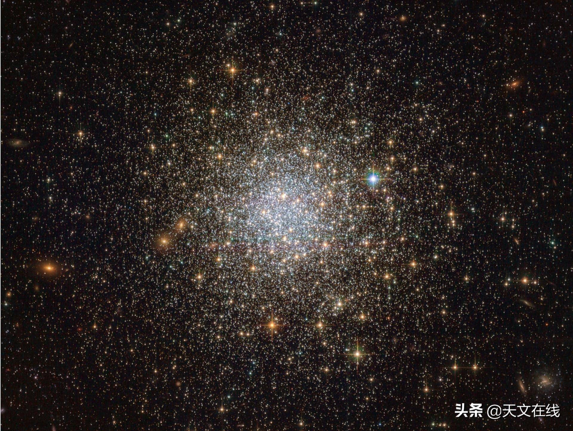 这个星团很闪亮。在一个名为NGC 1466的球形星团中,数千颗星球被重力聚集在一起。在这个古老的星团中,那颗蓝色的星星比其他成员有更大的质量,所以沉向中间。这个星团在宇宙中慢慢地移动着,现在在大麦哲伦星系的边上。大麦哲伦星系是在银河附近的一个卫星星系。