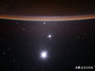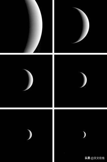 隐藏于巨大的土星的肩上,通过它的土星光环,穿越太阳系空间,美国宇航局的太空飞船监视到这个明亮的多云的类地行星,金星。