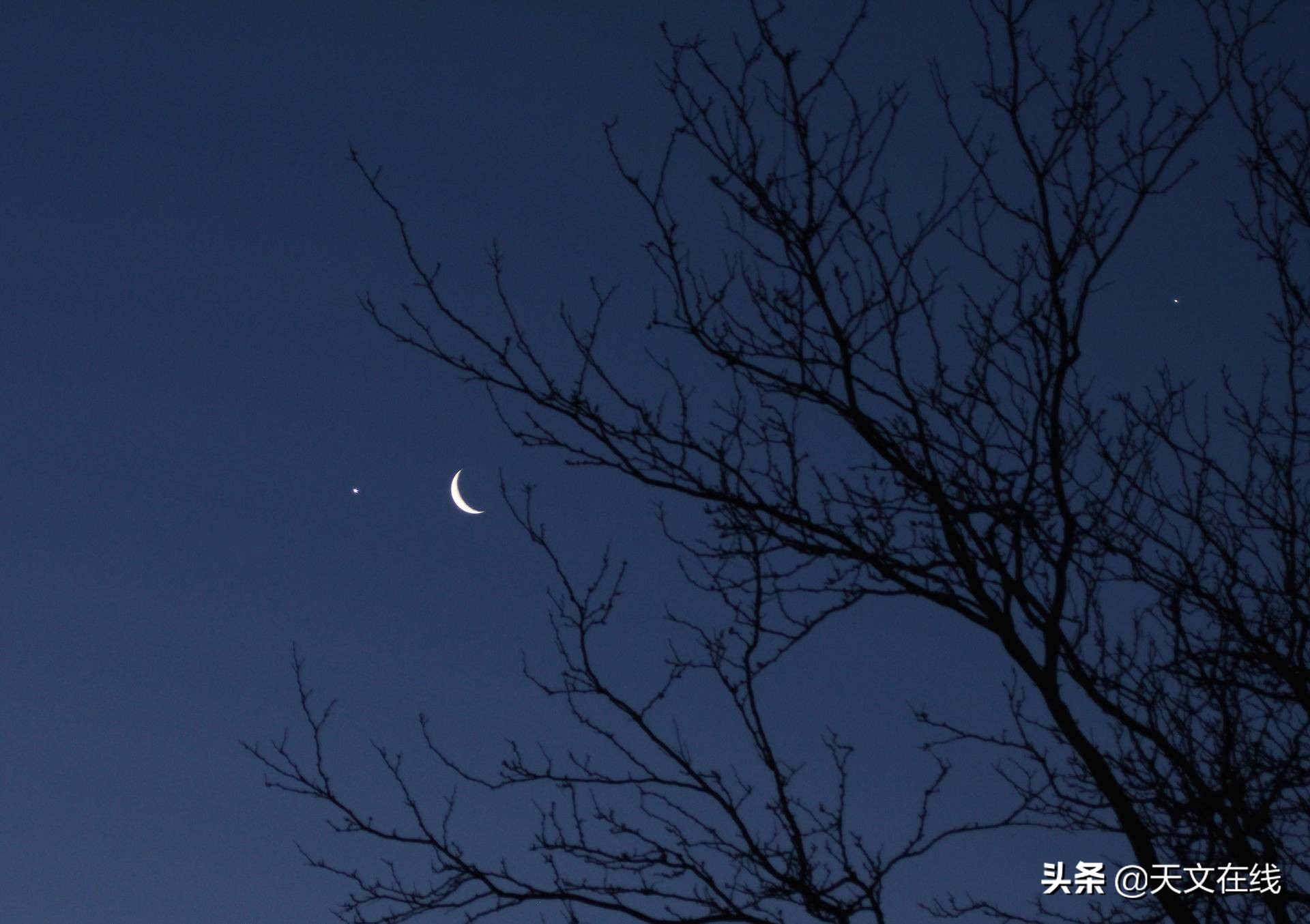 2015年12月25日星期一,在华盛顿特区,在掩星开始之前,白天可以看到金星在新月旁边。
