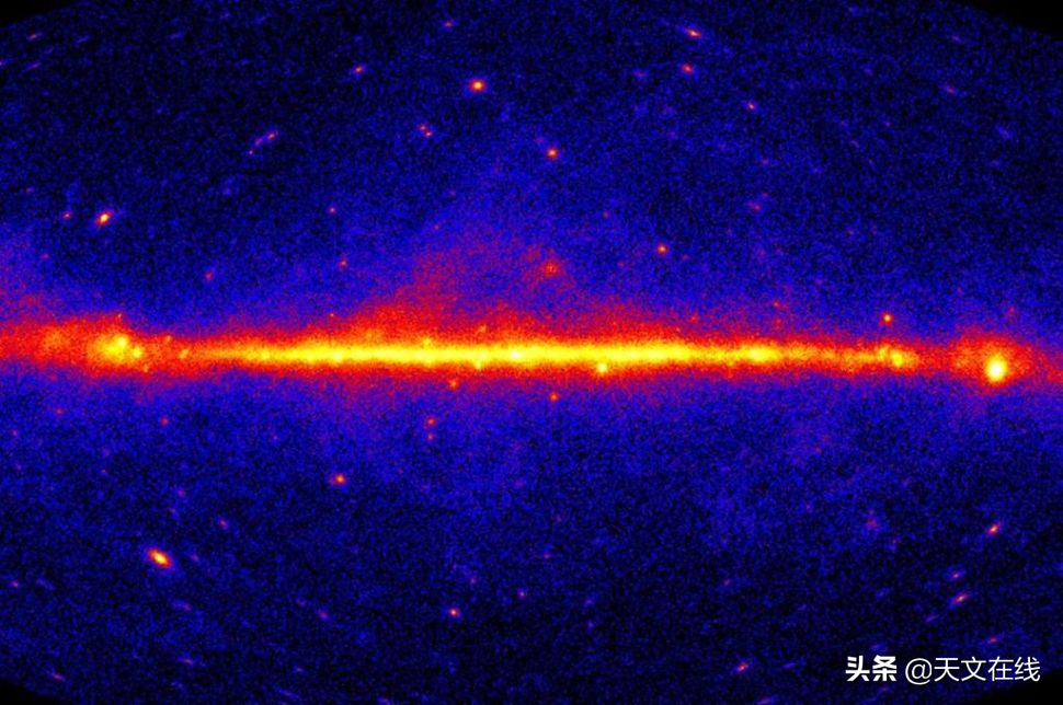 为了更好地了解这种影响究竟是什么样的,研究人员将这张质量图与过去九年间NASA费米伽马射线望远镜在同一区域探测所得的伽马射线辐射图进行了对比。研究团队根据其能量输出、距离和其他多种因素,利用数学模型移除了所有明确来自于黑洞和超新星这些“平常”来源的辐射。