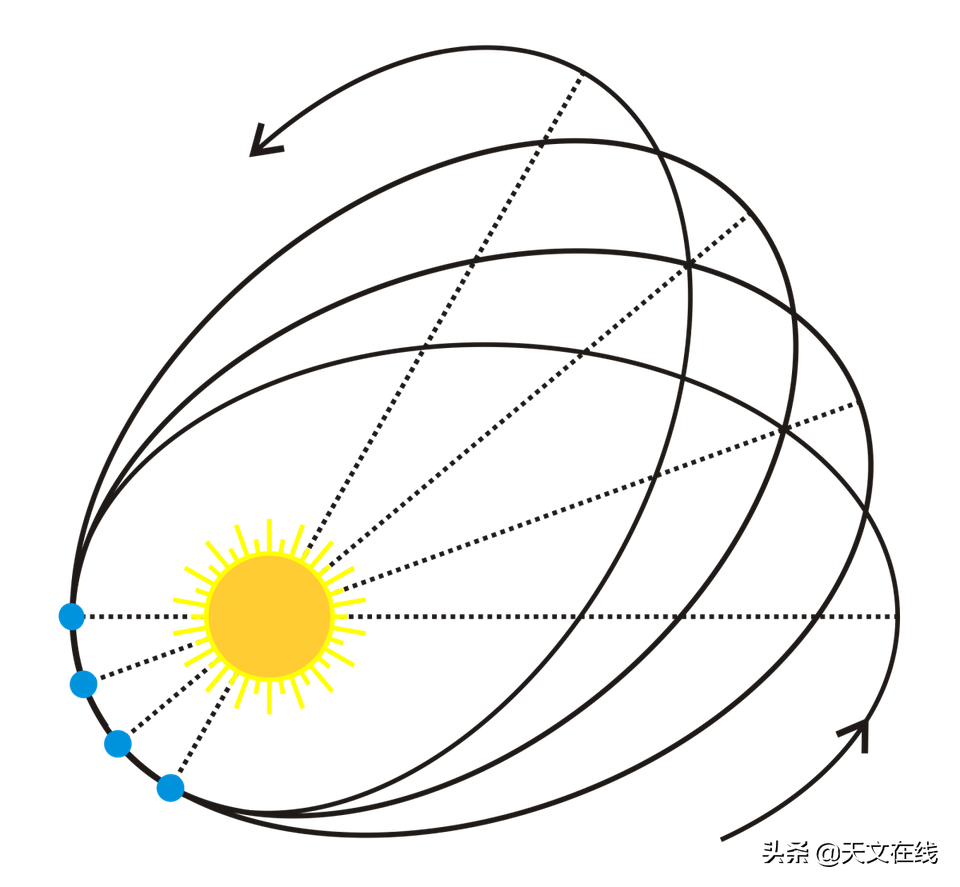 如果宇宙仅有两个点的质量——太阳和一个行星组成,那么该行星的轨道将是一个完美的,封闭的椭圆,每次绕太阳运行时,都会回到起始位置。但是在一个由牛顿引力统治的宇宙中,在我们的太阳系有很多大质量的天体,于是椭圆会向前或是稍稍在其轨道旋转。在19世纪中期,天王星和它预期的运动轨道的偏离导致了海王星的发现,因为最外层的引力影响了它的运动。