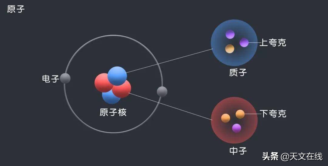 我:“原子是由大量电子和一个原子核构成,而原子核则由质子和中子组成。电子也是一种基本粒子,而质子和中子不属于基本粒子,但它们也是由三种基本粒子构成,我们把这种基本粒子称为夸克。原子的质量主要来源于其原子核,也就是质子和中子,所以我们可以立刻排除电子。而质子和中子的质量又来源于夸克。”