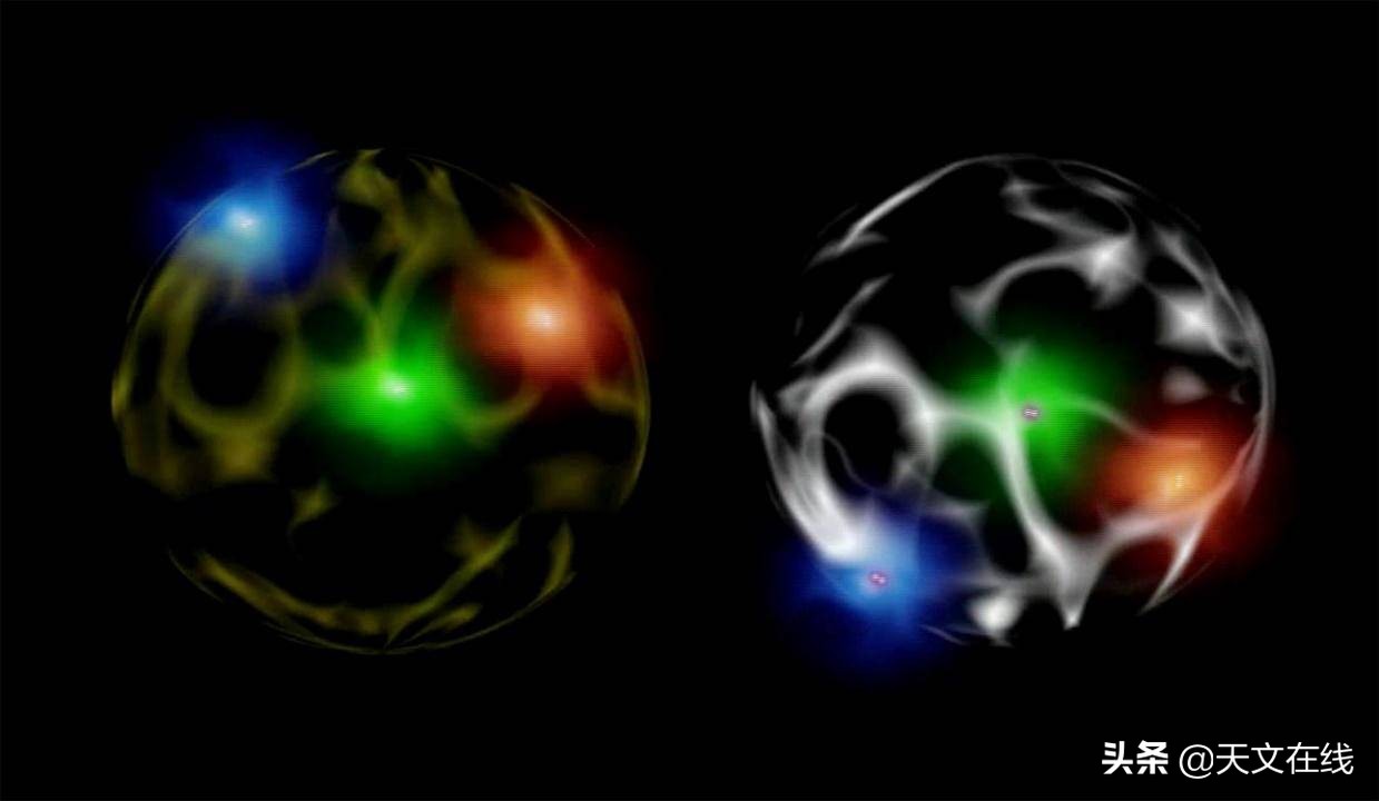 我:“你看,质子和中子都由三个夸克组成。”
