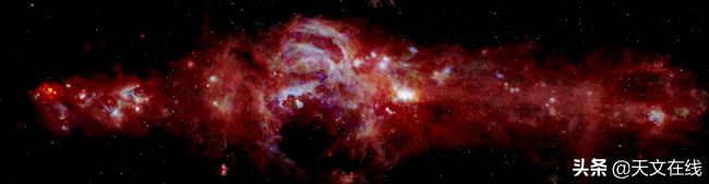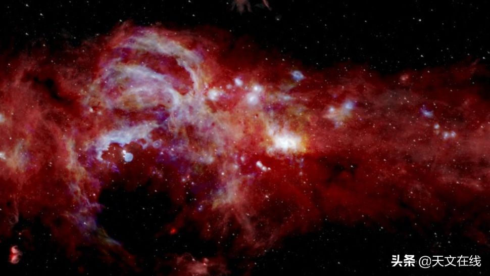 一个极其详尽的银河系中心新影像可以帮助解释我们星系其中一个未解之谜:为什么它的中心正在丢失恒星。一个来自四个不同来源的红外数据形成的高分辨率图像展示了由气体和尘埃组成的云团是怎样形成漩涡并相互作用的。据NASA报告,图像中出现的新特征可以解释恒星形成的奇怪模式。机构代表在报告中写到,“银河系中心区域内作为形成恒星基础材料的气体和尘埃明显多于星系其他区域。但是在这里诞生的大质量恒星数量比预测的少十倍。”