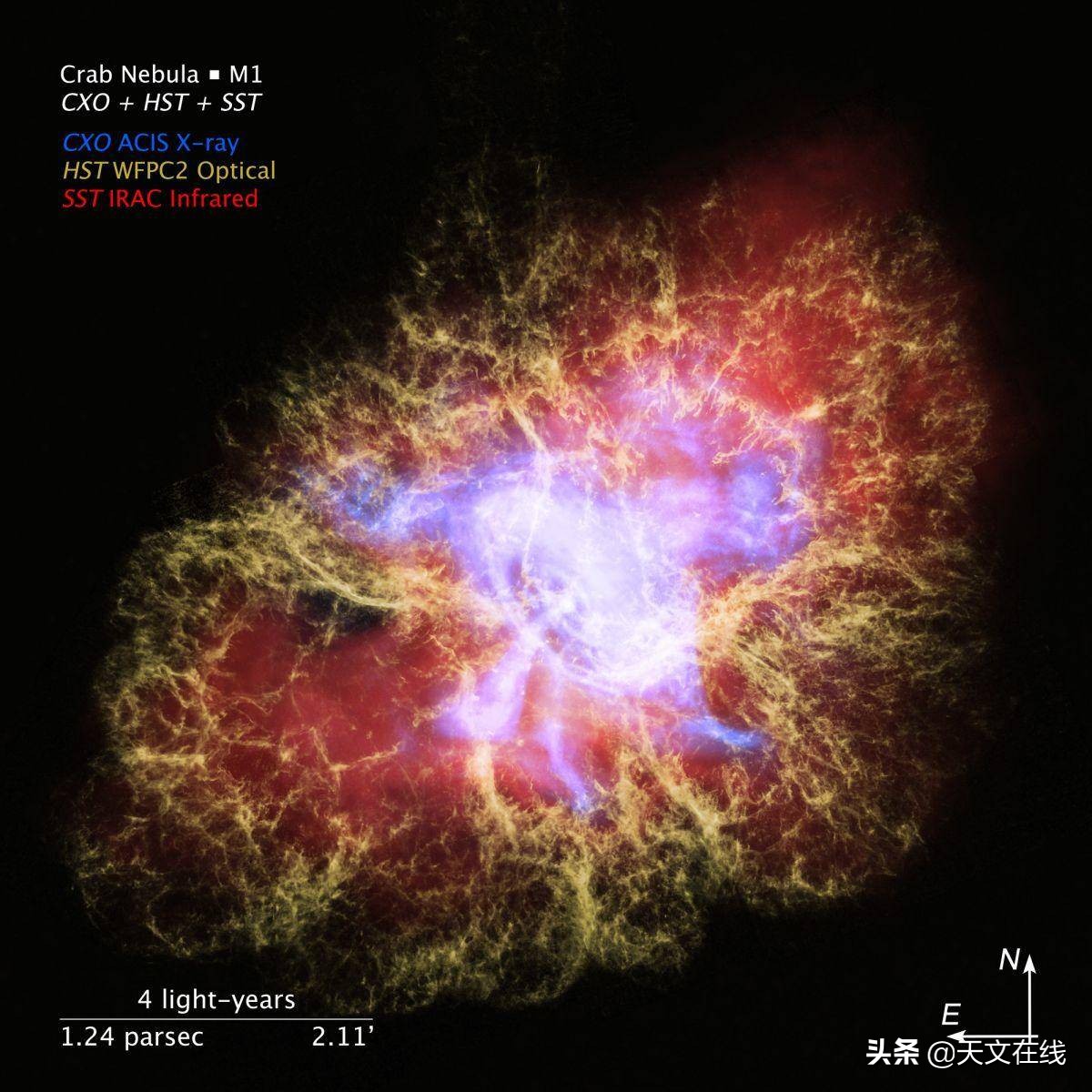 暗天体红外相机FORCAST观测到的两个频率,在图像中呈现为蓝色和绿色。另一个波长被欧洲航天局的赫歇尔空间天文台捕捉,显示为红色。最后,短波长被美国宇航局的斯皮策望远镜(将在本月即1月30号结束使命)捕捉,显示为白色。根据美国宇航局的数据,这些波长共同描绘了一幅横跨600光年的太空区域的图景。