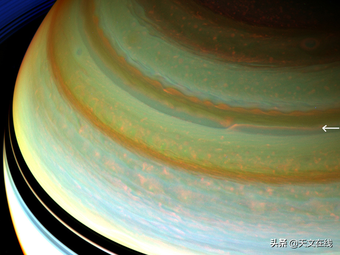木星上有大红斑,土星上也有一些巨大的风暴与其类似,像白色的斑点。