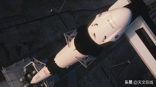 图解:在佛罗里达州美国宇航局肯尼迪航天中心39A发射台,SpaceX公司的龙飞船2号和猎鹰火箭9号。