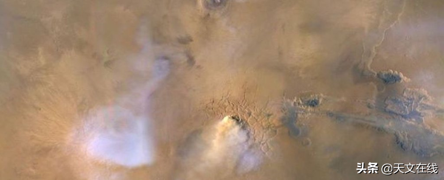 在这些暴风雨期间形成的沙尘塔,甚至在没有全球性暴风雨时甚至会形成,它们被太阳加热并升入大气层。 科学家认为,形成火星细密云团的水分子会被所有尘埃困住,并被带入大气层。这类似于在地球上的强风暴期间雷雨云或积雨云形成的方式。 但是在火星的高海拔地区,太阳辐射会分解水分子。 这些尘埃塔至少可以部分解释火星如何在数亿年的时间内失去了水。