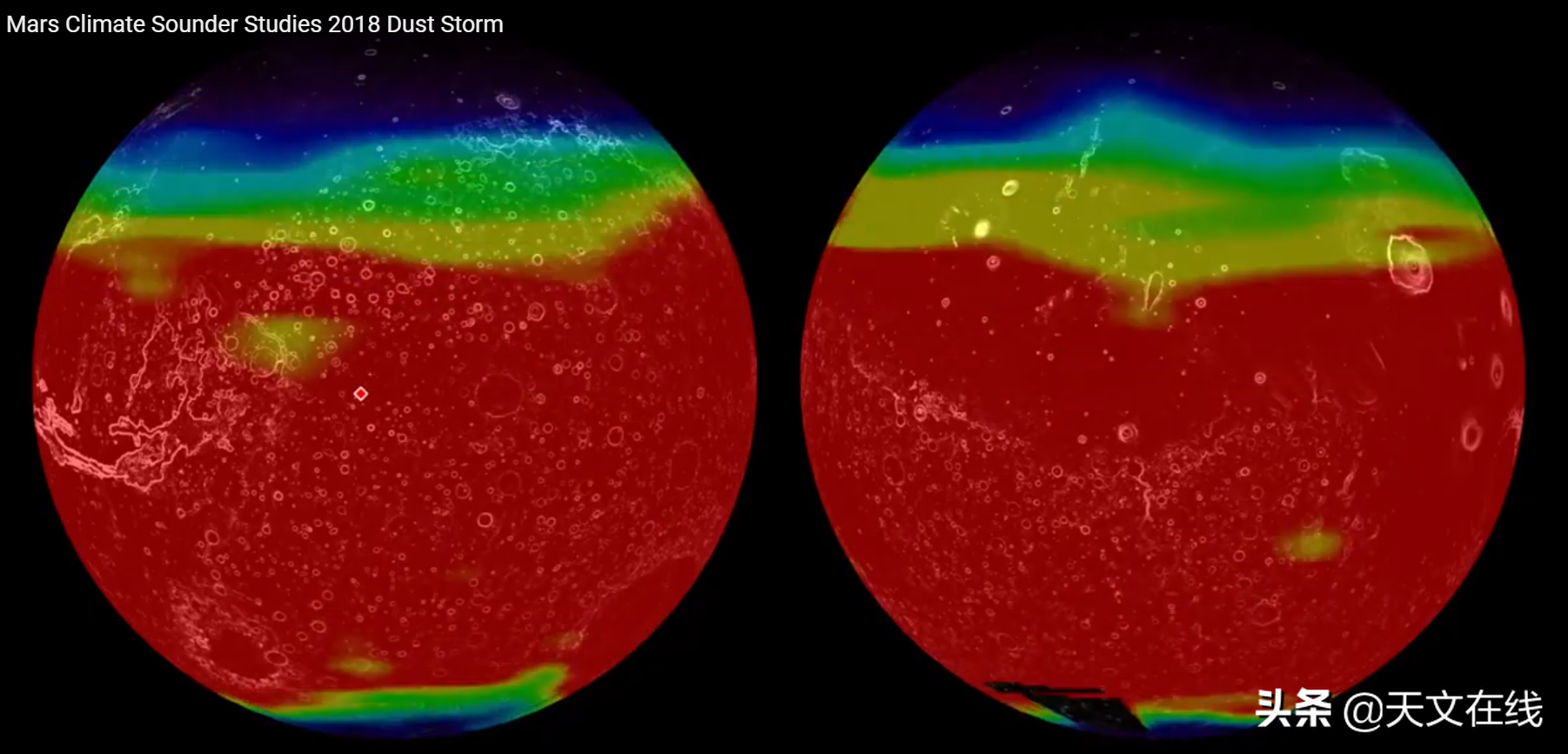 MRO配备了一套仪器,包括火星气候探测仪(MCS),这是一种可以在红外光谱和可见光谱中都能看到的热敏仪器。 MCS可以测量火星大气中的温度,湿度和灰尘含量。 它的数据显示了火星大气层如何随时间循环。随着时间的增加,MRO及其气候探测器将收集更多有关火星气候的数据,尤其是有关全球沙尘暴及其沙尘塔的更多数据。 NASA的MAVEN(火星大气与挥发性演化)轨道器也在研究火星大气层,特别的关注火星是如何随着时间失去水分和大气层的。NASA的奥德赛轨道飞行器已经在火星上飞行了18年。 它的THEMIS (热发射成像系统)仪器还可以跟踪火星的表面温度,大气温度以及空气中的灰尘量。