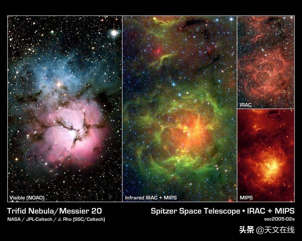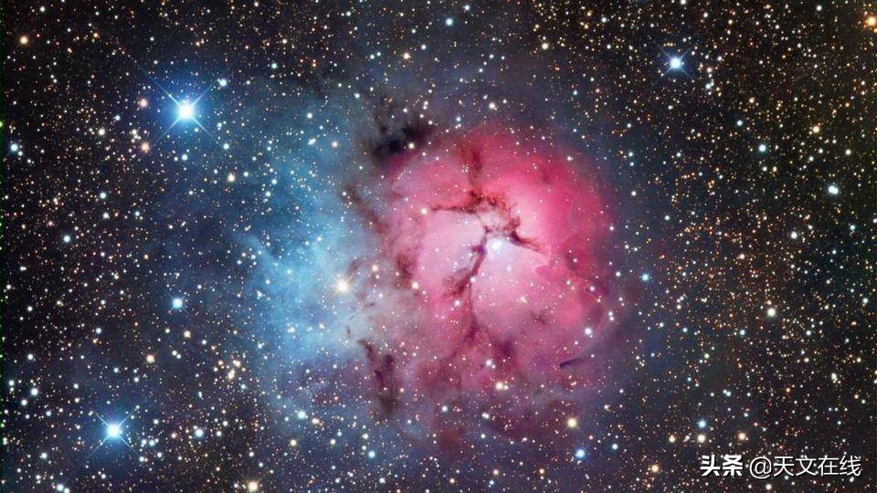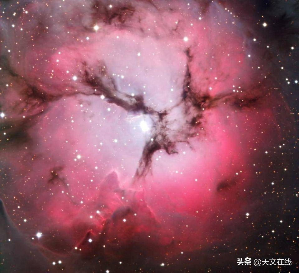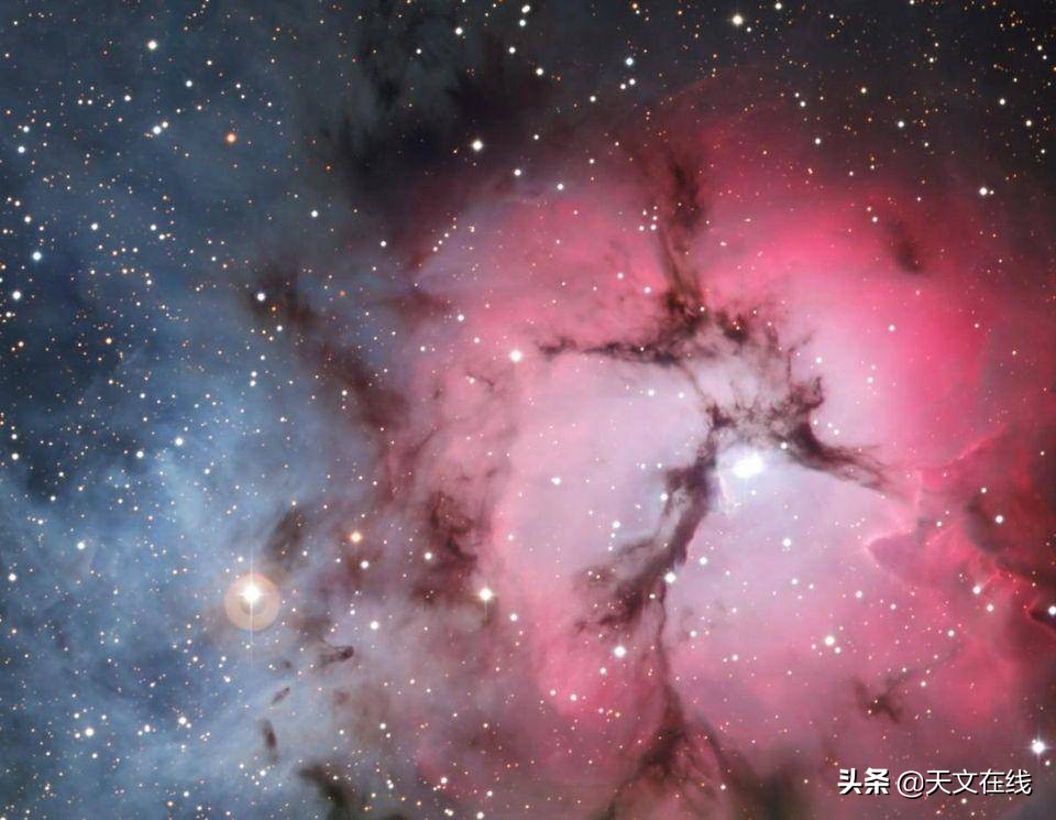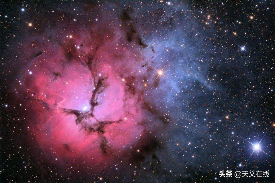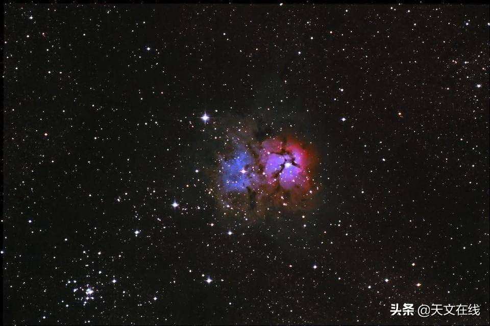 银河系中最年轻的产星星云,因为由蓝色,红色和中间的富尘区域三个部分组成而被命名为“三叶星云”。