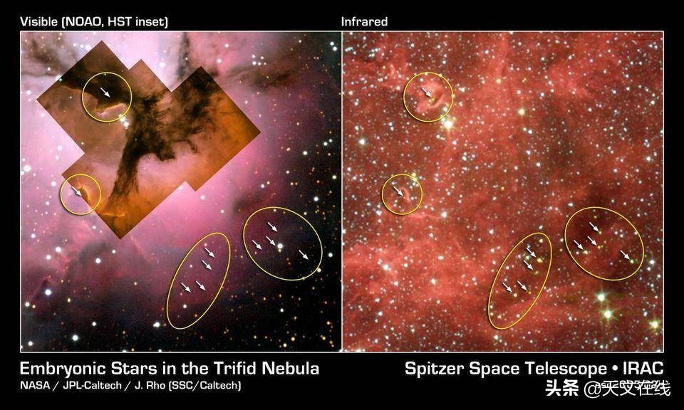 这三种组分代表了产星星云的三个不同演化阶段,它们是在过去的几百万年中,由气体分子云坍缩形成的。