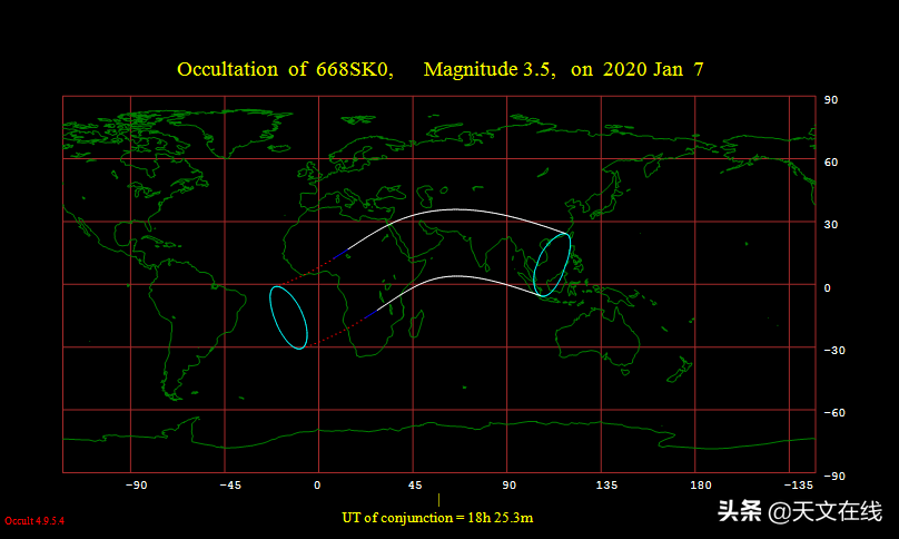 香港3时49分,恒星由月球暗面消失。香港掩入时月球仰角6度,地平方位288度。