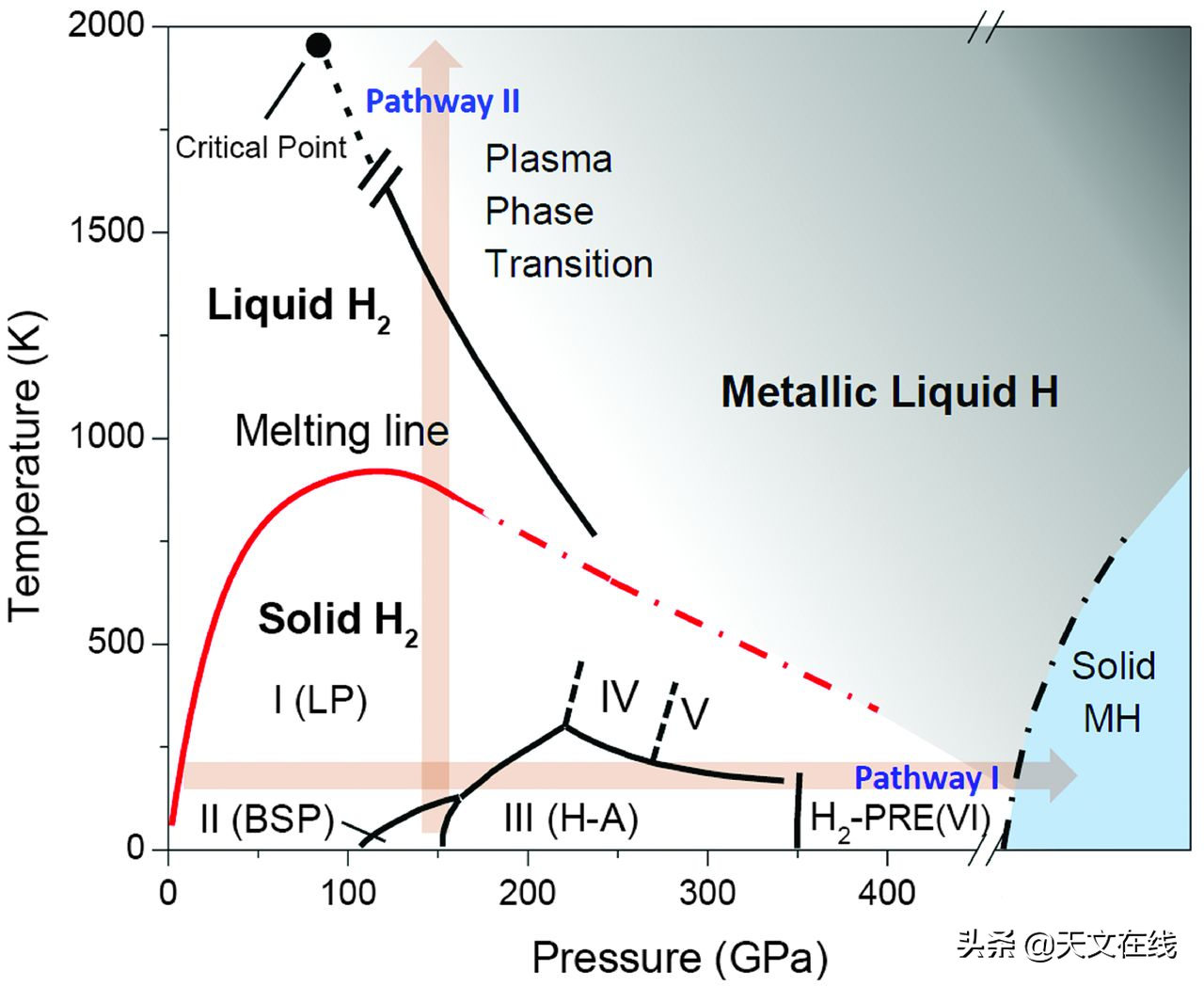 在高压和高温下,金属氢可以以液体而不是固体的形式存在。研究人员认为,在木星、土星和一些系外行星的高温和被引力压缩的内部里,可能存在大量的金属氢。