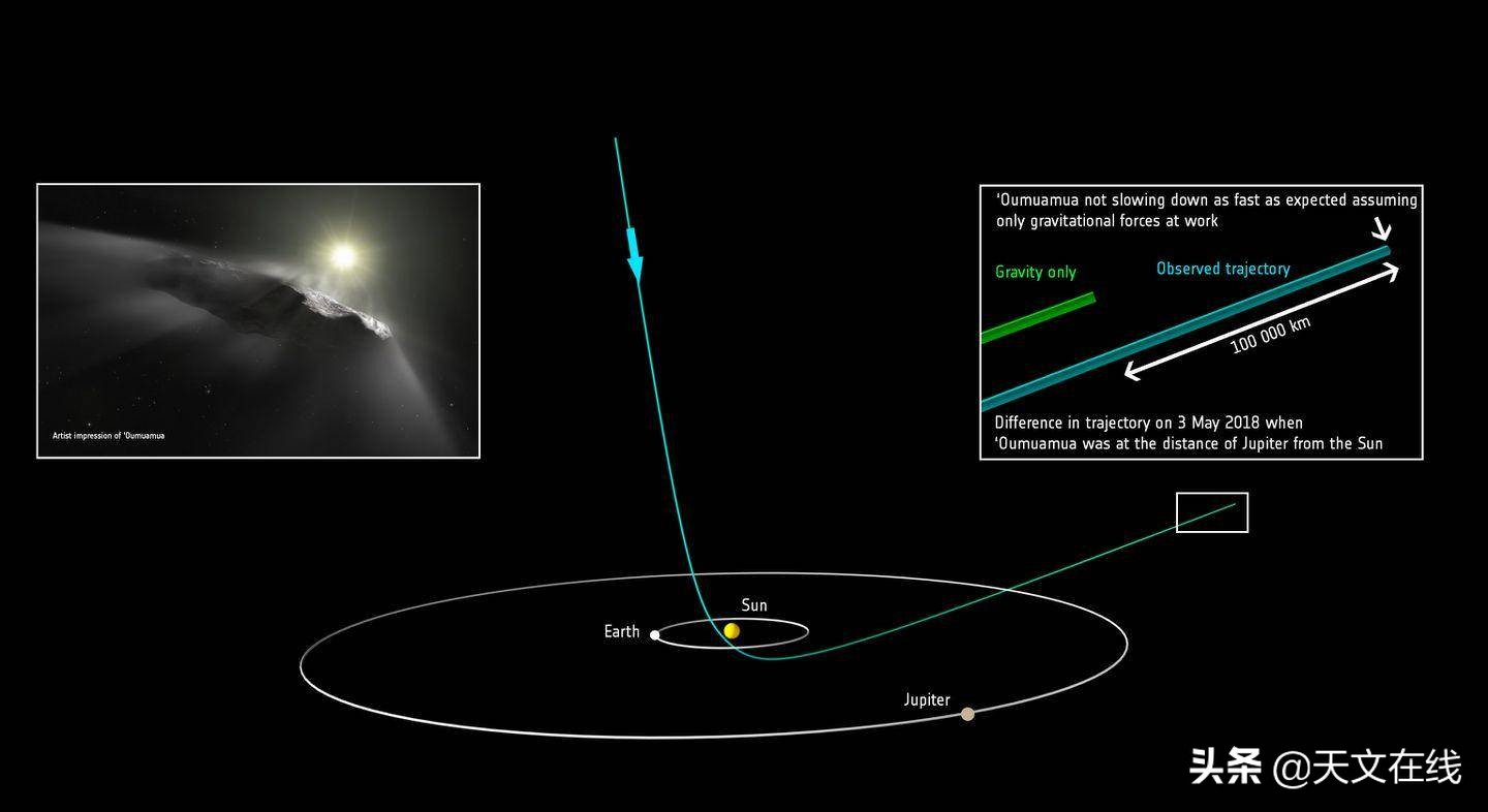 天文学家于2017年10月19号发现了第一个记录在案的星际天体1I/2017 U1“奥陌陌”,并且由于它旋转穿越过太阳系,我们能够收集数百条关于这个天体的观察结果:它是奇怪的雪茄形状,似乎是因为它加速脱离了太阳。关于它的起源和导致加速的原因(外星人)有一些疯狂的猜想,但是关于它更像一颗陨石还是彗星的猜测性争论却几乎没有,因为彗星会随着太阳的加热而释放一些气体。观察结果并没有发现它有彗星状尾巴的证据,但是根据天文学杂志上的一篇论文,“奥陌陌”富含挥发性气体的排气结构为其奇怪的轨迹提供了最简单的解释。