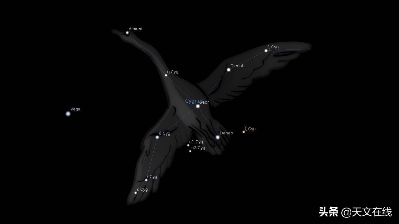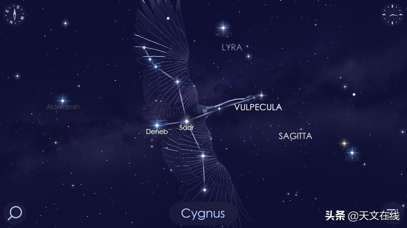 但是,还有另一种同样有效的方式来看待这个星座的形状。在更现代的天文学中,这个星座有时被称为北十字。它看起来很像一个十字架,对吧?如果你更倾向于这是一个十字架而不是天鹅,天津四就是十字架的头部。