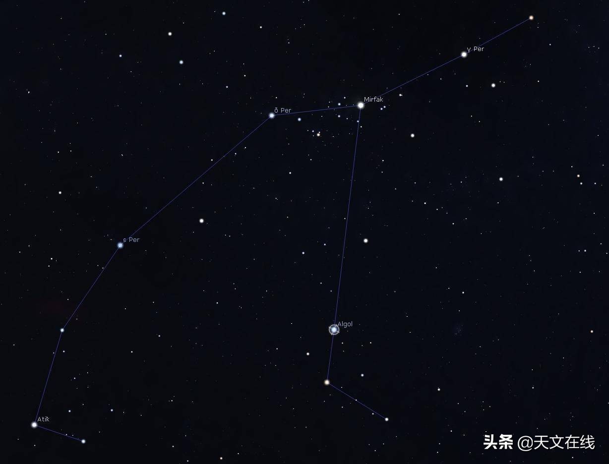 英仙座β星,也被称为大陵五,是一个食变双星,每2.87天它的星等就会从2.1降到3.4。每一次的掩食的用时,即包括全食和局部吞食的用时将近10小时。