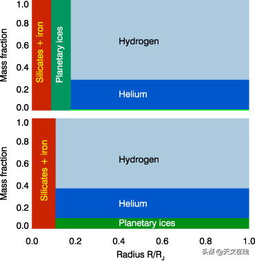 他说,“基本上可以说木星的内部和土星差不多,内核都像个天王星或者海王星一样。”天王星和海王星都有个别称“大冰球”,因为两者都是由氢冰和氦冰包裹着各自的岩质内核,但是都没有像包裹着木星或者土星一样的气体。