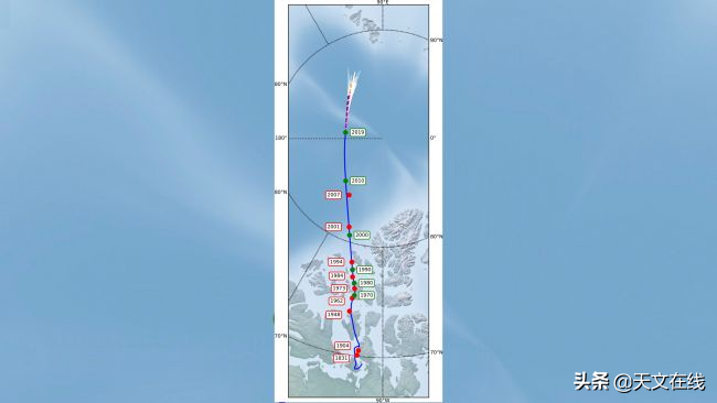 研究人员在研究报告中写道:“但在过去的7000年里,(北磁极)似乎在绕着地理极点混乱地移动,没有显示出首选的位置。”根据建模,北极在公元前1300年也向西伯利亚移动。