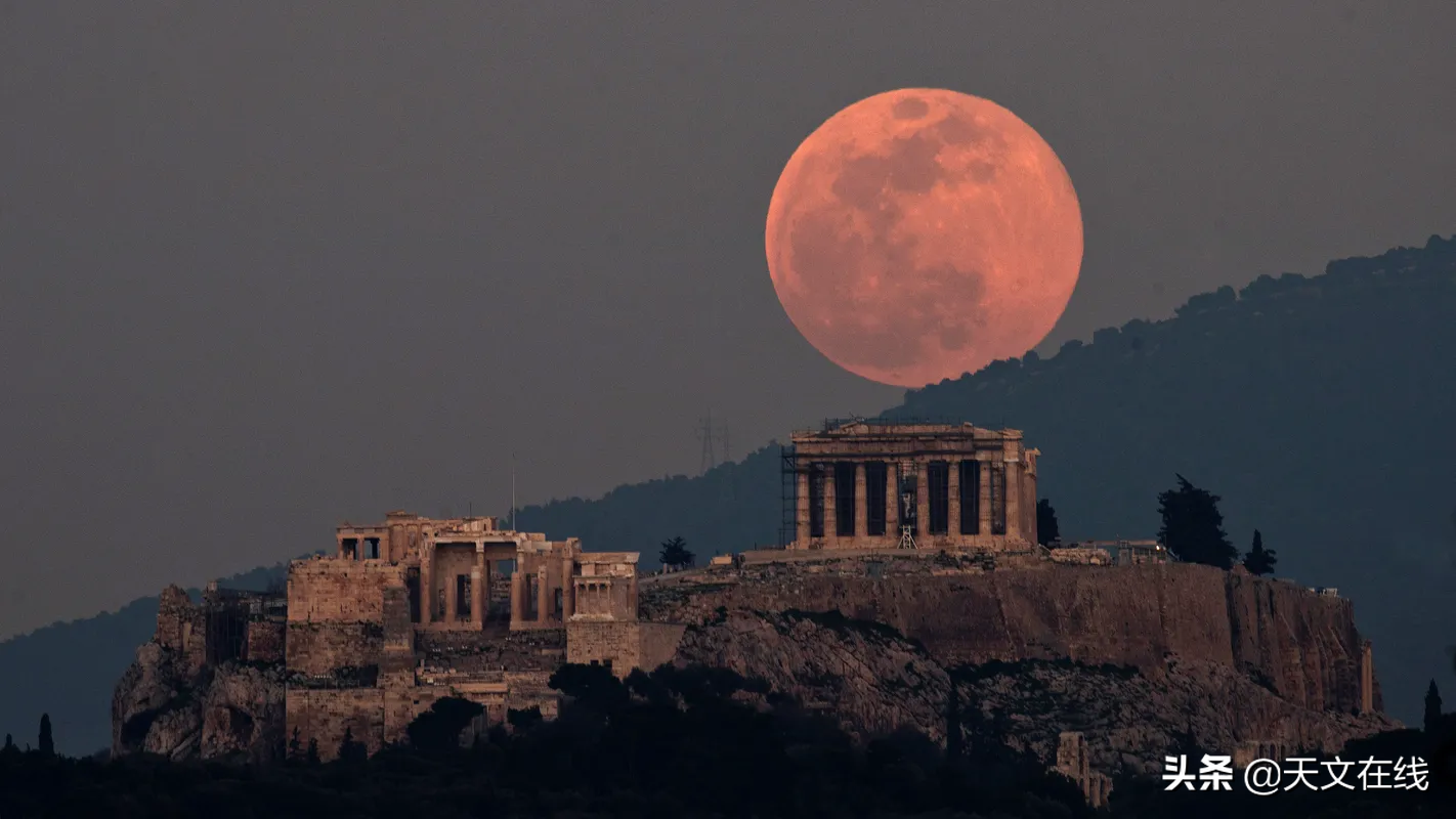 当所谓的“超级月亮:刚从地平线上升起时,在视觉上的确非常巨大。这就是著名的“月亮错觉”现象(月亮在接近地平线时显得大,正当顶空时显得小),在实际生活中,它将产生之分壮丽的景观。