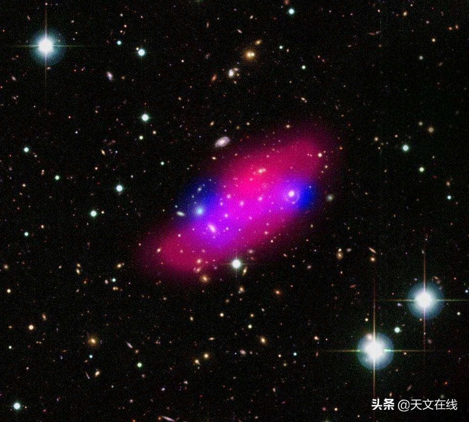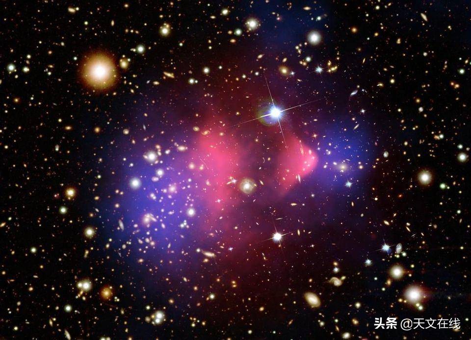 当两个星系团碰撞时,单个的星系会穿过彼此,就像两发从远处射向彼此的鸟弹。