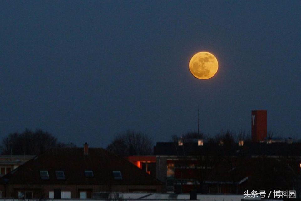 2011年三个成排的超级月亮点亮夜空,超级月亮这一词汇开始出现在公共词汇中。图片上显示的是德国慕尼黑观测到的中心位置的月亮。在我们看到的所有蓝月亮中,有很大一部分是超级月亮。图片:Kai Schreiber of flickr