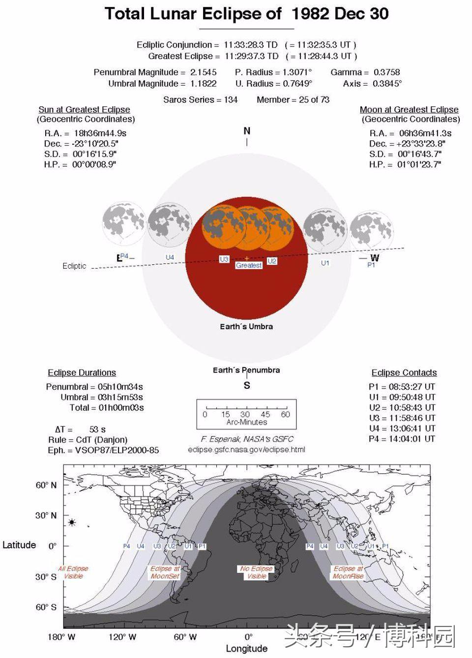 尽管它的出现频率不高,但在36年前蓝月亮上发生了另一次超级月亮月食。图片:F. Espenak, NASA / GSFC