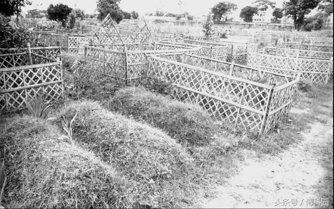 1975年拍摄了一张孟加拉国农村墓地照片,那里埋葬着许多天花受害者。据说孟加拉国达卡一家医院里46%的受害者都是因它而死,数百年来该国一直受到天花侵害。