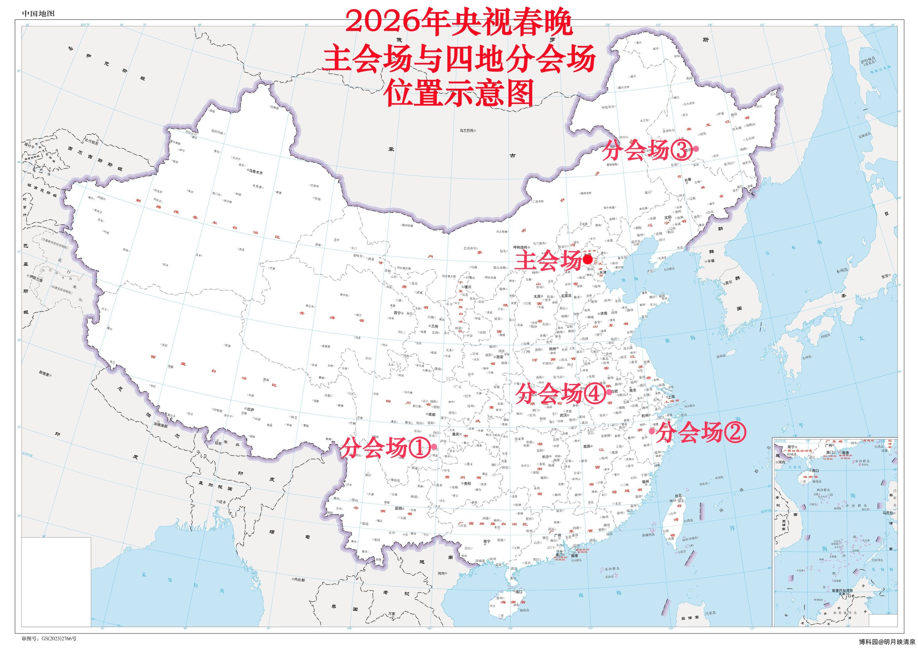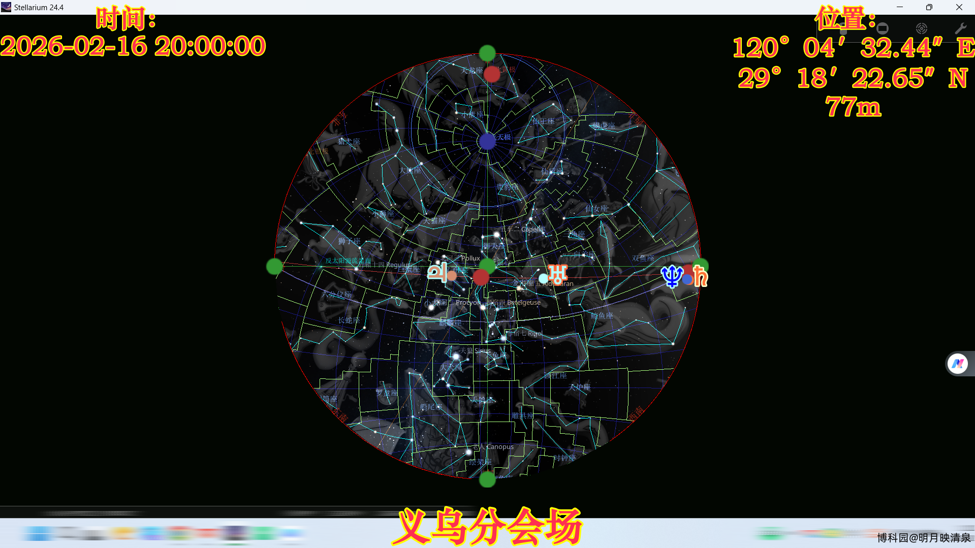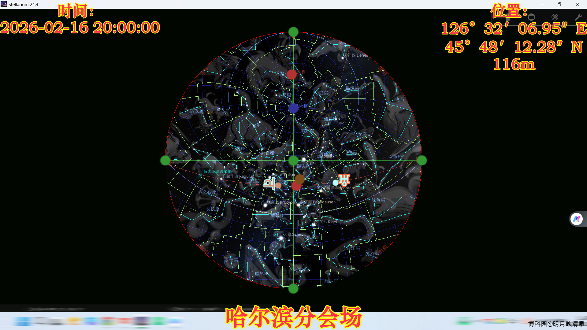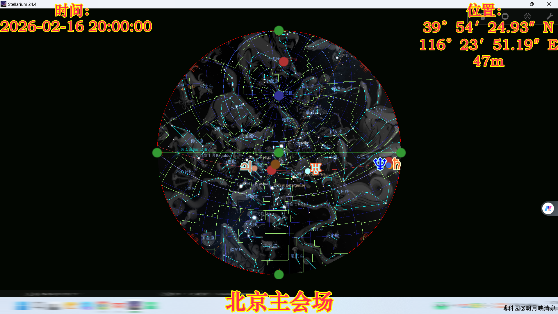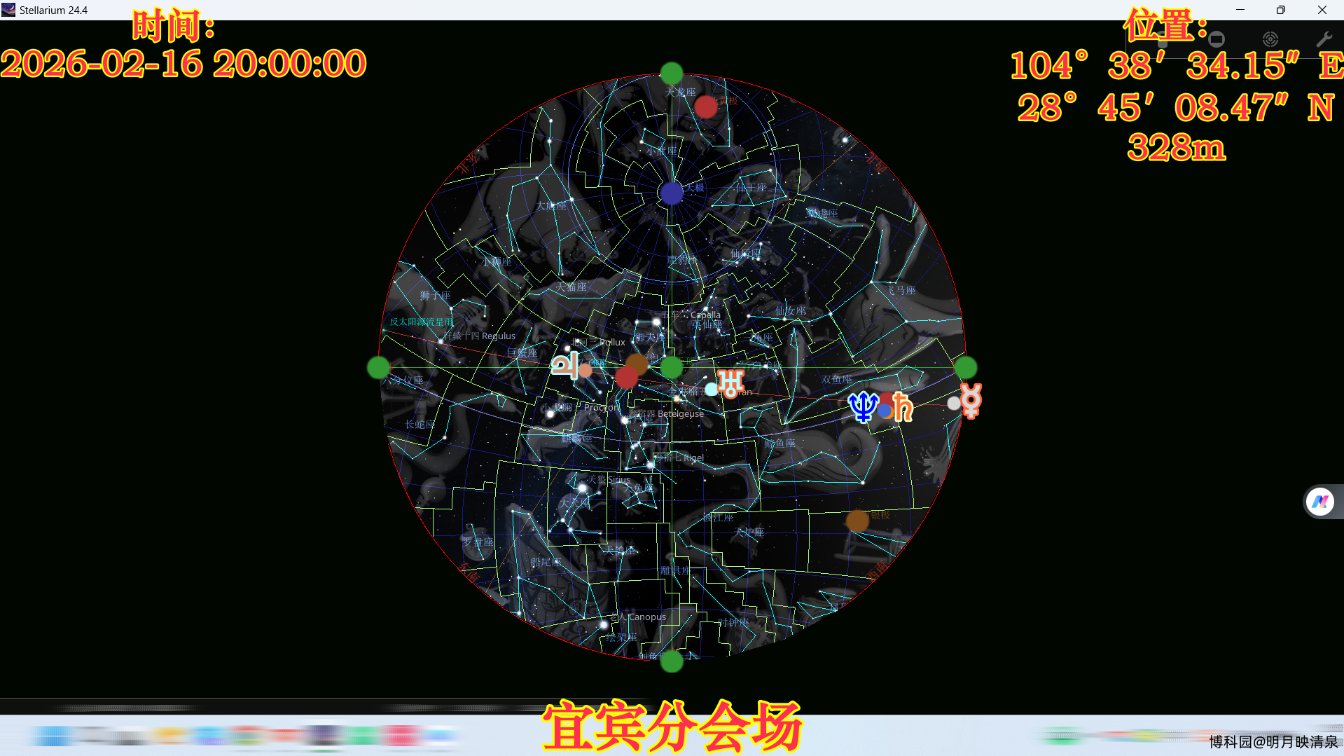 2026 年央视春晚播出开始时,主会场与四地分会场的实时星图