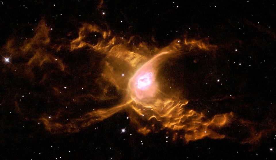 20、最后这张图中显示的双射流星云是一个双极星云,它被认为起源于一个快速旋转的恒星,或者是在它死亡时是双星系统的一部分恒星。