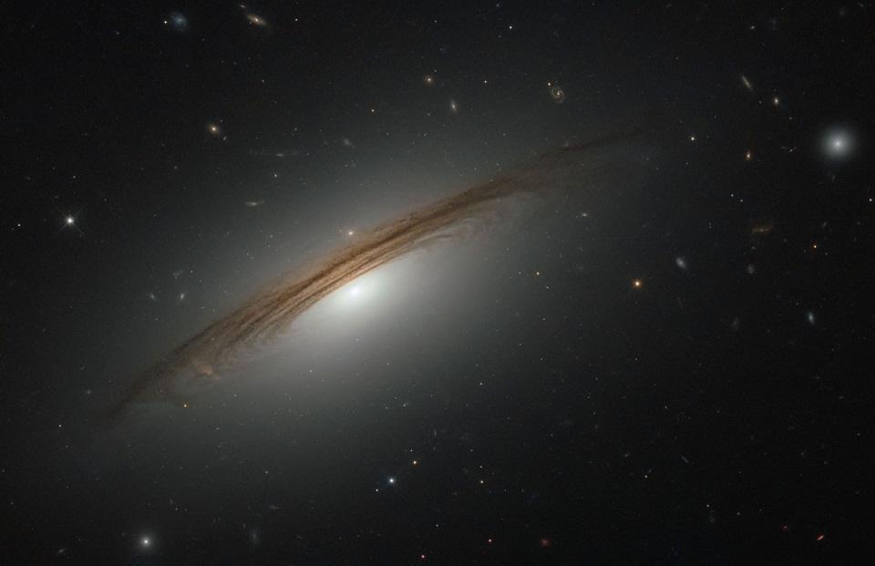 6、这个不寻常的星系是从螺旋到透镜状星系的演变之间的一部分,包含巨大的中央隆起和与螺旋相关的经典尘埃带。随着时间的推移,如果发生更多的重大兼并,这将成为一个真正的椭圆星系。
