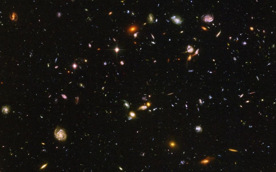 3、哈勃超深场拥有超过10000个星系,其中有一些星系团聚在一起,是宇宙最深处的景观之一,展示了一个巨大的宇宙从附近许多结构的光在到达地球之前驰骋了130亿多年。