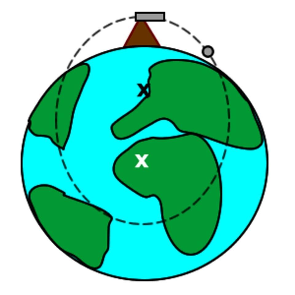 如果一个暗物质粒子以相当于你体内质子速度的速度飞行,它就会形成一个以地球中心为焦点的大致椭圆轨道。因为它不会与物质发生相互作用,它只是简单地穿过固体地球,就像它是空的空间一样。图片:Ron Kurtus / School for Champions / http://www.school-for-champions.com/science/gravity_newtons_cannon.htm