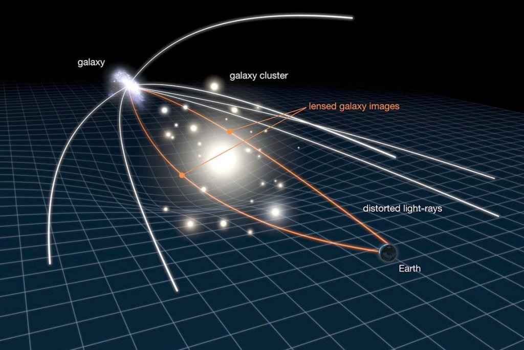 对天文学家来说,引力透镜是研究宇宙中最远天体的重要工具。这项技术包括使用一个巨大的物质簇(通常是一个星系或星团)在一个遥远的光源和观察者之间,以更好地看到来自该光源的光。在爱因斯坦的广义相对论预测的结果中,天文学家可以看到可能被遮挡的物体。