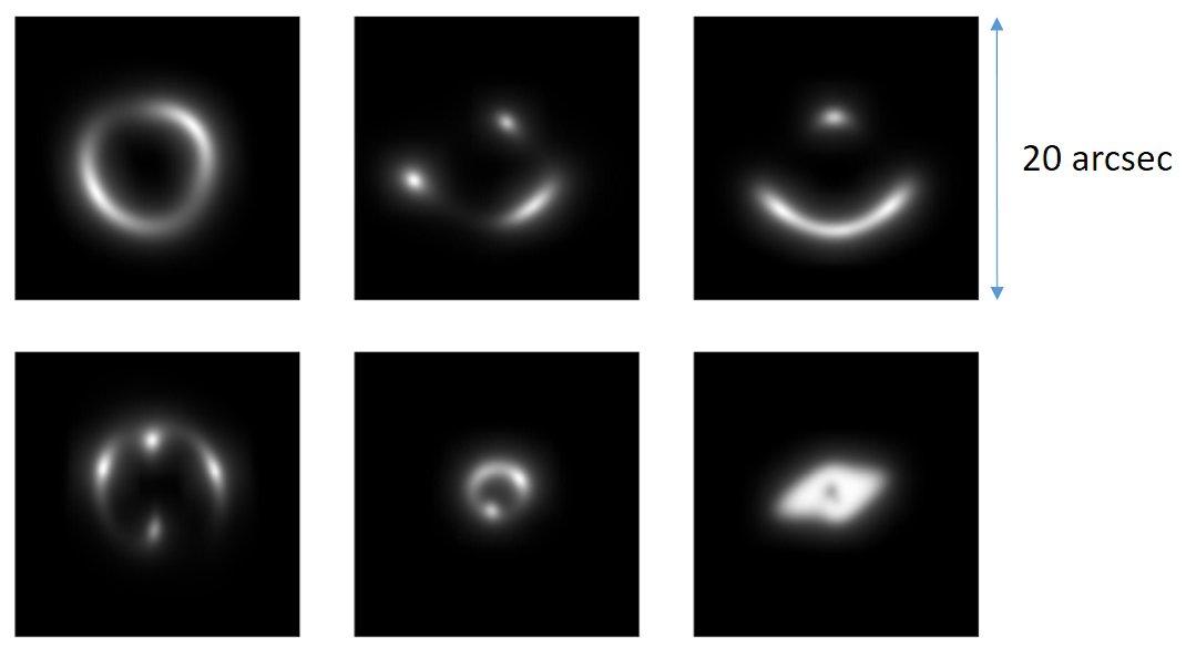 天文学家用来训练他们的神经网络的引力透镜的手工照片样本。图片版权:Enrico Petrillo/Rijksuniversiteit Groningen