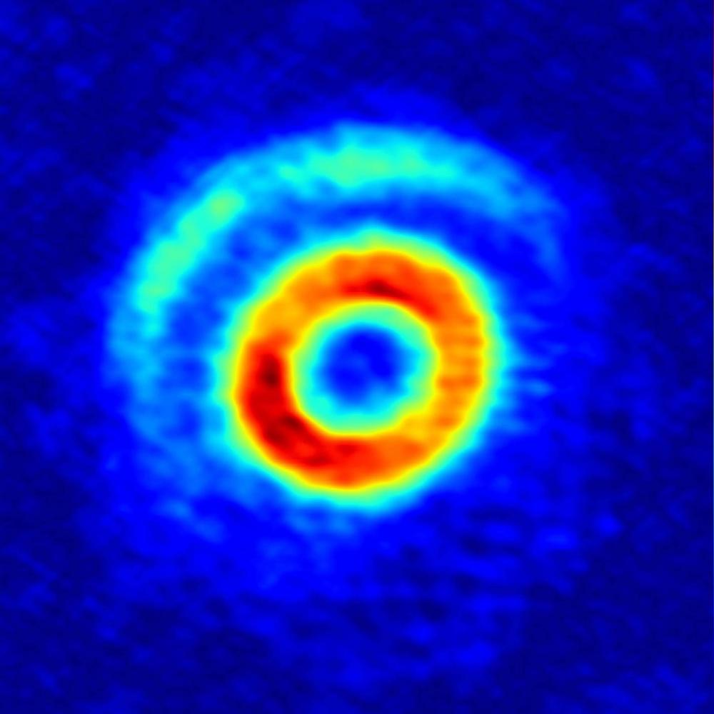 该团队制作了明星及其周围灰尘盘的详细图像,分为两部分:清晰定义的物质中心环和更加精细的新月形结构。环形和新月之间的区域,如黑色条纹,被认为是由一个年轻的行星雕刻通过光盘造成的。随着行星在其轨道上移动,其运动在其路径的任一侧产生高压区域,类似于船舶在穿过水面时产生弓波。