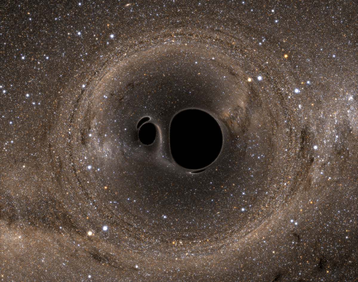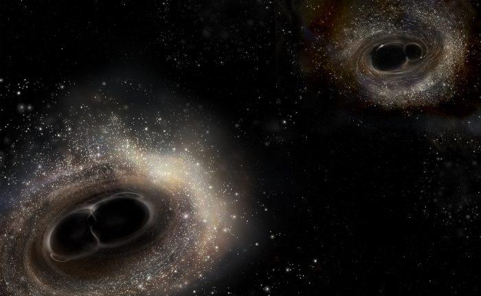 两个黑洞合并的概念图,类似于LIGO在2017年1月4日发现的。图片版:LIGO/Caltech