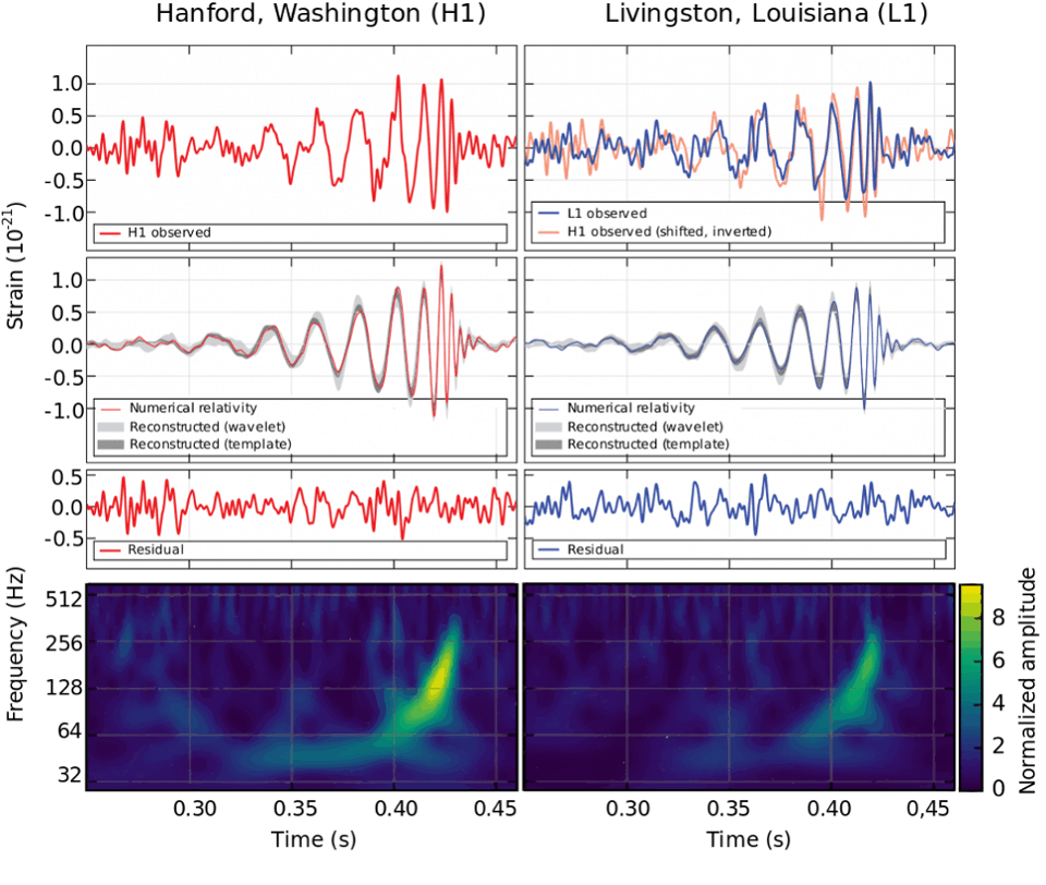 (图注:)2015年在地球上第一次探测到太空中的“涟漪”,这是由强大的引力场扰动产生的。这标志着诺贝尔奖历史上科学发现与诺贝尔奖之间最短的时期之一,尽管LIGO在这方面做了40年。图片:LIGO Scientific Collaboration, IPAC Communications & Education Team