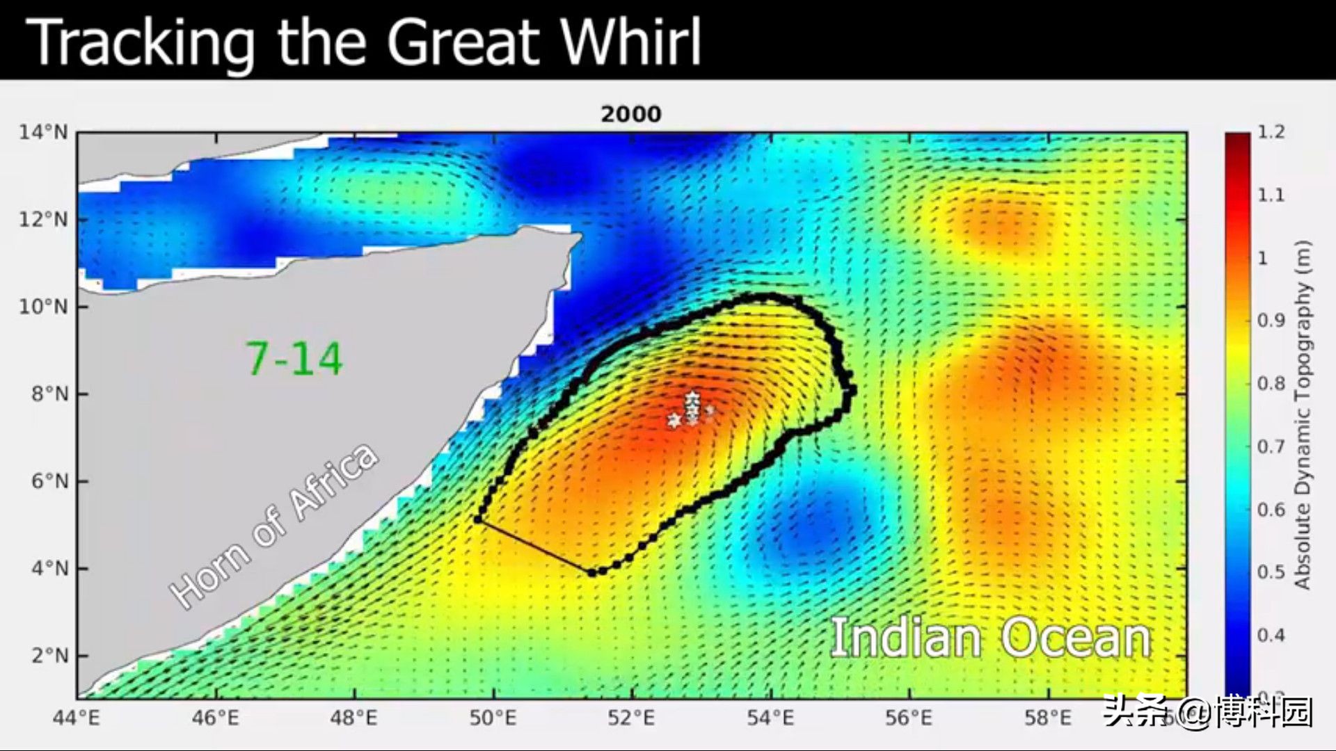 2013年一项利用卫星数据的研究发现,在其顶峰时,漩涡可以扩大到500多公里(300英里)宽,比大峡谷还长。多年来,科学家们一直对大漩涡感兴趣,但一直难以直接研究它。监测涡旋需要长时间的多次重复观测,但索马里海岸猖獗的海盗活动使研究人员无法冒险靠近它,也无法在海洋中放置仪器来观察它。而且,由于漩涡如此之大,它的运动方式与较小漩涡不同,科学家很难确定它的边界。因此,科学家们还没有完全理解涡旋是如何年复一年地变化,也不知道它究竟是什么时候形成,什么时候消失。研究人员最近转向卫星,看看他们是否能从远处监测到涡旋。