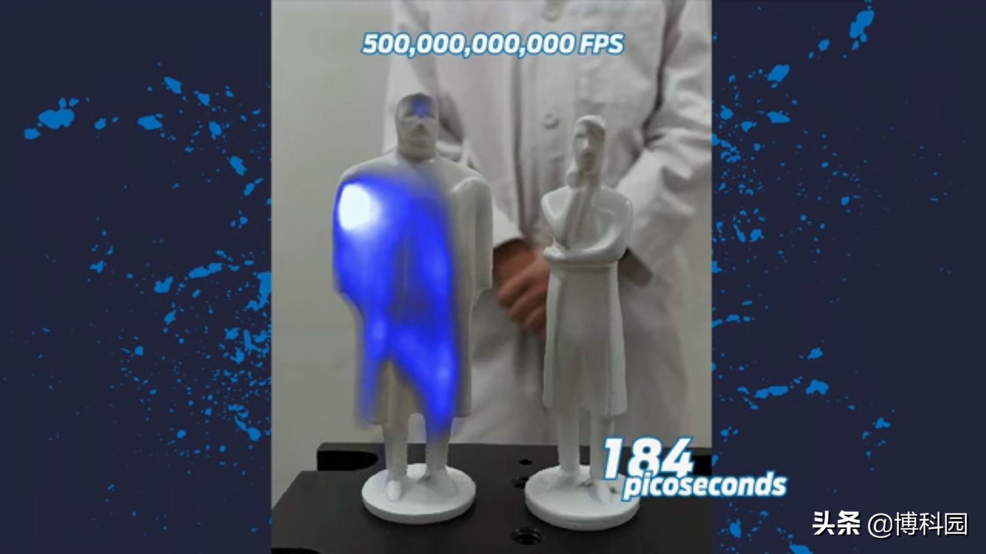 加州理工学院的研究人员发布了一段新视频,展示了相机的性能。视频中,一束激光以每秒约1000亿帧的速度穿过一瓶牛奶(相比之下,大多数电影是以每秒24或25帧的速度拍摄)。