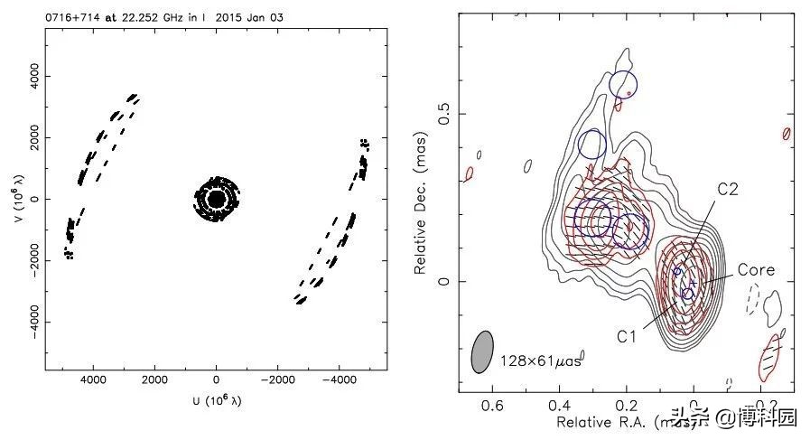 博科园-科学科普:“耀变体”对象(BL Lacertae objects, BL Lacs)是一种展现出比其他“耀变体”更低功率射流和更高多普勒因子的blazar。S5 0716+71是BL Lacs之一,以其在电磁波谱中的极端变异性而闻名,包括所谓的盘中变异性(IDV)。虽然IDV现象仍然困扰着科学家,但有证据表明它是由相对论射流固有的过程产生。S5 0716+71是目前观测到IDV有内在起源的最佳候选之一。因此,由俄罗斯列别捷夫物理研究所天体空间中心Evgeniya V. Kravchenko领导的一个天文学家团队决定使用Spektr-R以最佳角度分辨率研究S5 0716+71的射流结构,并研究其IDV的起源。