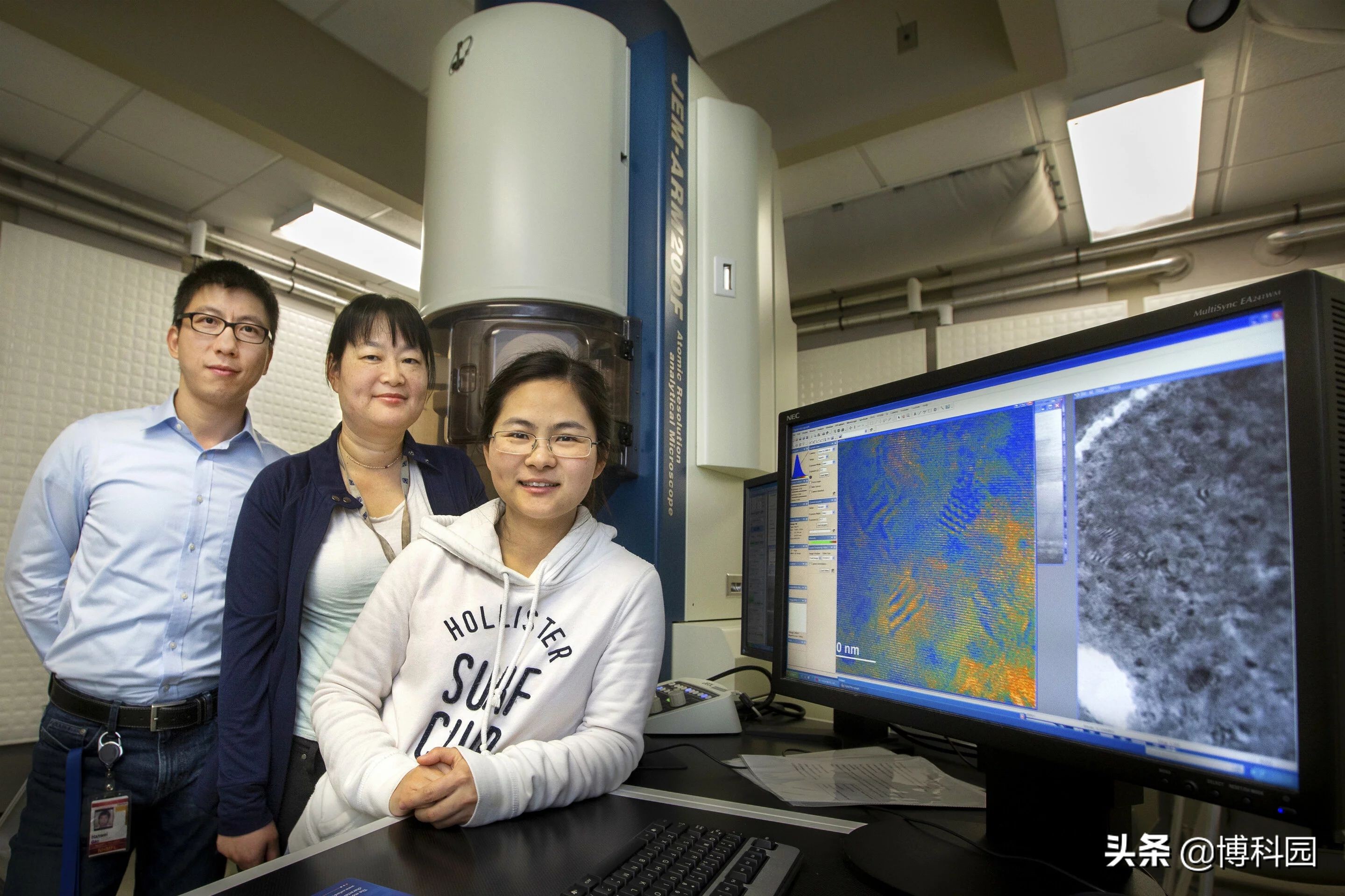 - FSU物理系助理教授高汉伟、国家MagLab研究员严欣、FSU研究生习Wang利用透射电镜对卤化物钙钛矿进行研究。图片:FSU