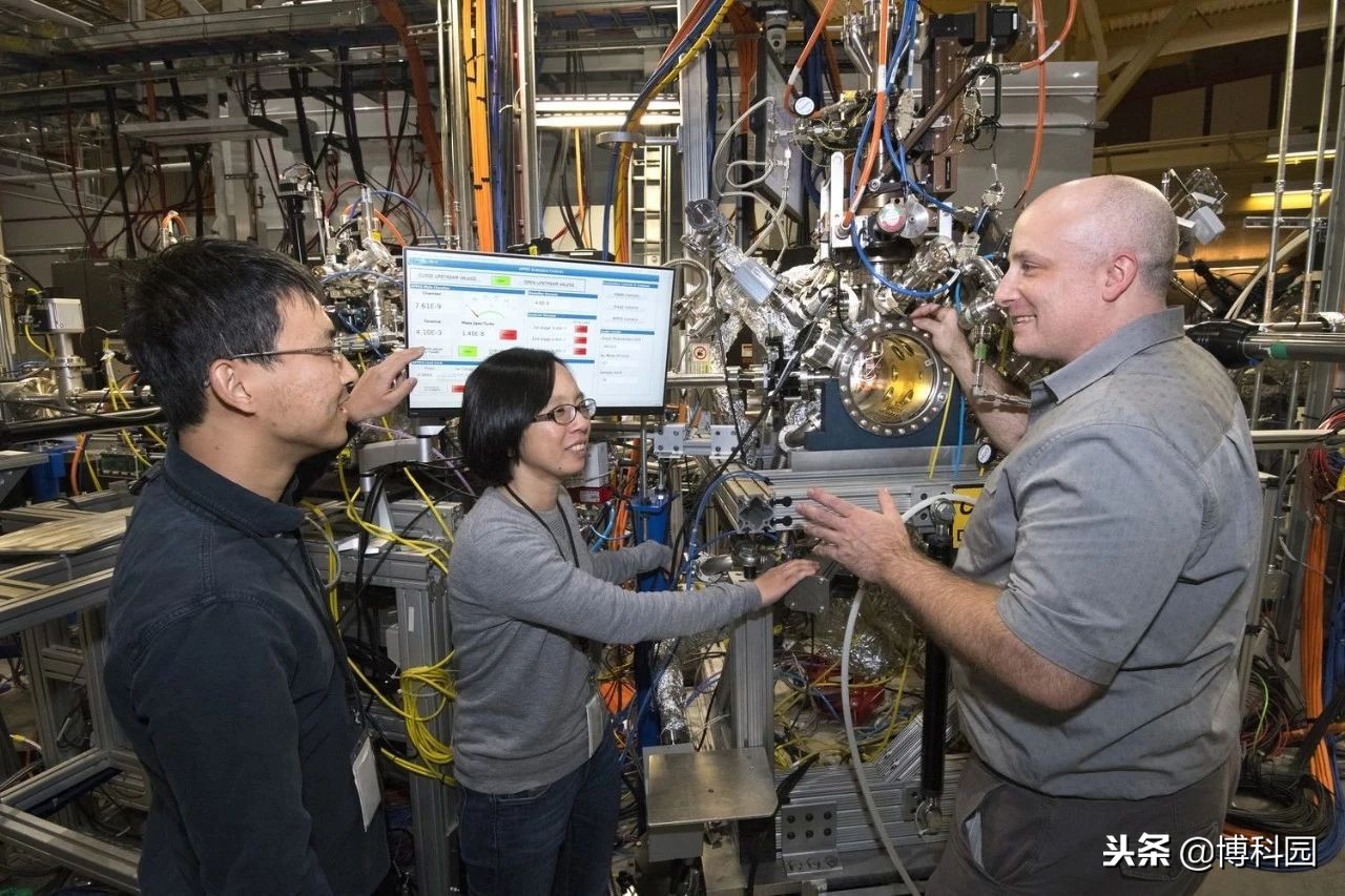布鲁克海文实验室的科学家们从左至右分别是Ge Mingyuan、Iradwikanari Waluyo和Adrian Hunt,他们在IOS beamline上研究了氢燃料电池高效催化剂的生长路径。图片:Brookhaven National Laboratory