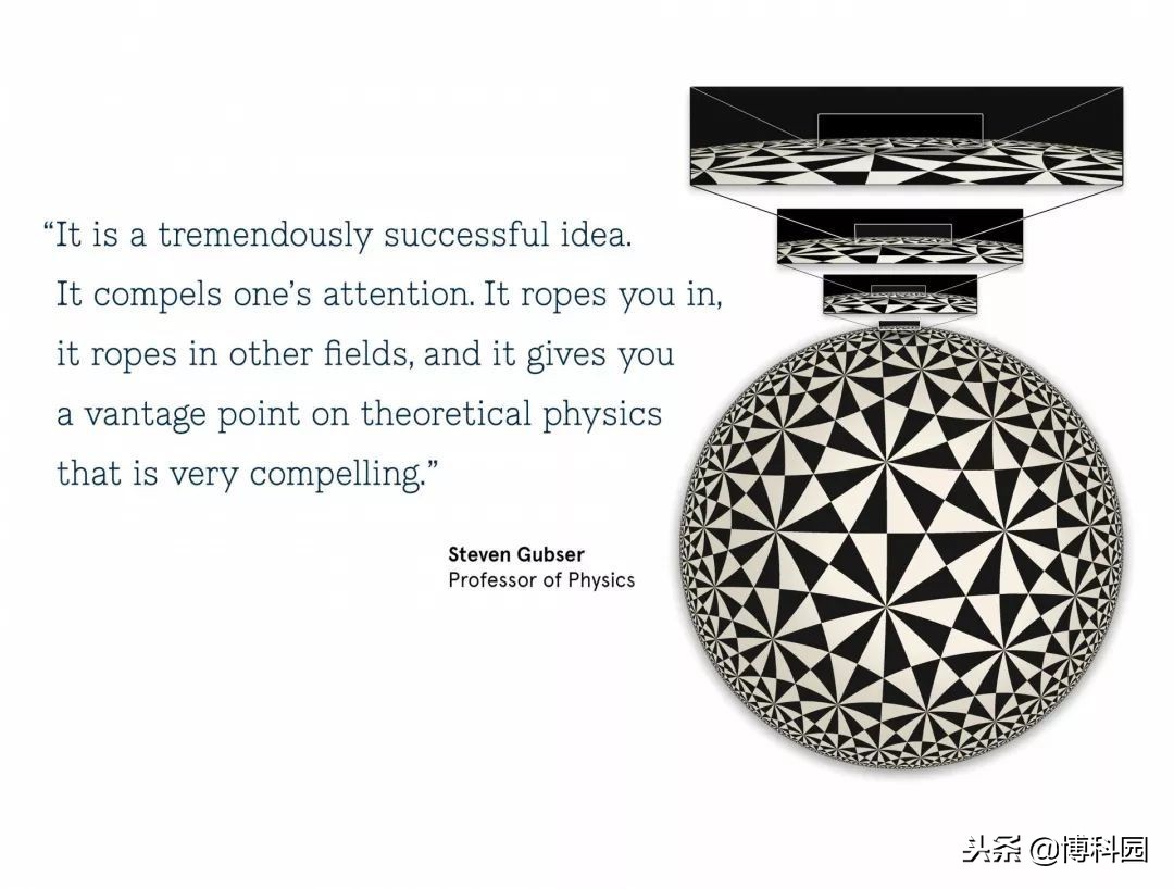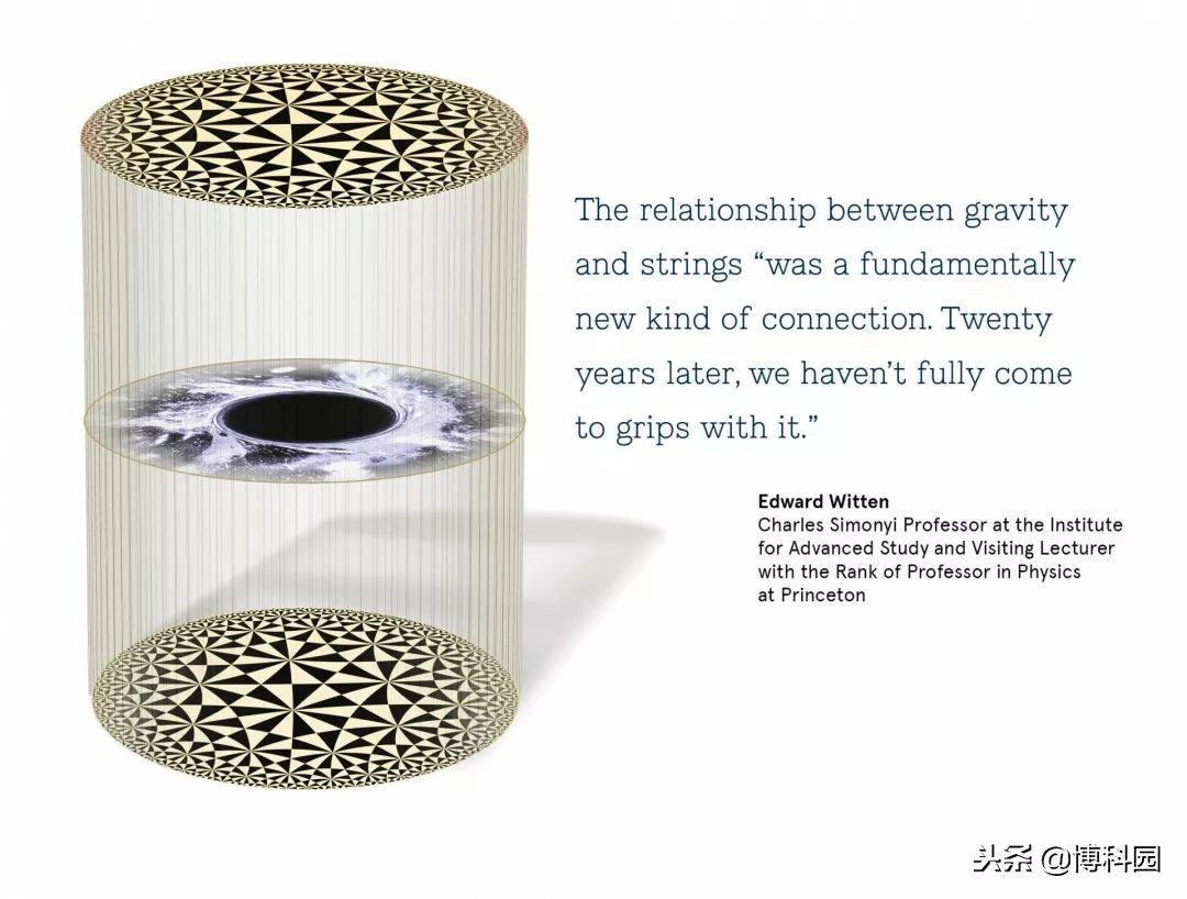 这项工作仅限于胶子和黑洞的例子,胡安•马尔达塞纳(Juan Maldacena)在1997年提出了一个见解,将这些碎片拉进了一种更普遍的关系中。一年前,马尔达塞纳在普林斯顿大学获得了博士学位,当时他是哈佛大学的助理教授。他发现了一种特殊形式的引力与描述粒子理论之间的对应关系。看到马尔达塞纳猜想的重要性,一个由古伯瑟、克里巴诺夫和波利亚科夫组成的普林斯顿团队随后发表了一篇相关论文,用更精确的术语阐述了这一观点。另一位立即被这个想法吸引的物理学家是爱德华·威顿,他来自高等研究院(IAS),这是一个独立的研究中心,距离大学校园大约一英里。他写了一篇论文进一步阐明了这个观点,这三篇论文在1997年底和1998年初的结合打开了闸门。弦理论领域的领军人物威滕说:这是一种全新的联系,他1976年在普林斯顿大学获得博士学位,现在是普林斯顿大学物理学教授级别的客座讲师。20年过去了,我们还没有完全解决这个问题。