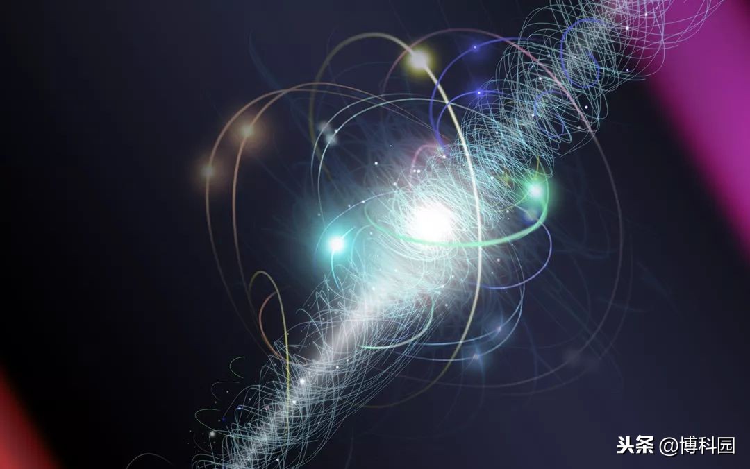 (艺术概念图)一个电子在实验过程中在两束激光之间穿行,电子绕着它的轴旋转,因为其他亚原子粒子的云团不断地发射和重新吸收。图片:Nicolle R. Fuller, NSF