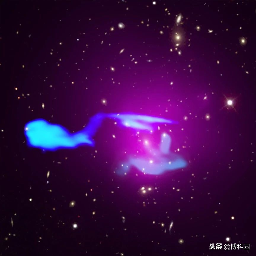 这意味着高能电子的数量和能量都比之前想象的要多。一种观点认为,由于额外的冲击和湍流,电子的能量进一步增加。除了星状物体外,图像中其他的射电源是来自另一个星系的短射流(标记为“短射流”)和“射电凤凰”(射电凤凰)。射电凤凰是由电子云组成的,这些电子云在射电发射过程中逐渐消失,但在冲击波压缩云时又重新被激发。正如在2015年报道的那样,这使得云再次以无线电频率发光。进行这项研究的研究小组将利用钱德拉和洛法的观测资料,寻找更多的星系群与扭曲的射电辐射碰撞的例子,以进一步了解这些高能天体,这一结果发表在《科学进展》上。