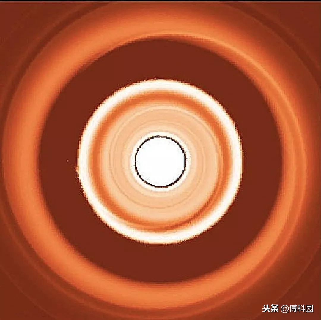 这张模拟图片显示了一颗正在迁移的系外行星周围尘埃环,小尘埃在行星内部形成了一个环,大尘埃在行星外部形成了一个环。图片:University of Warwick