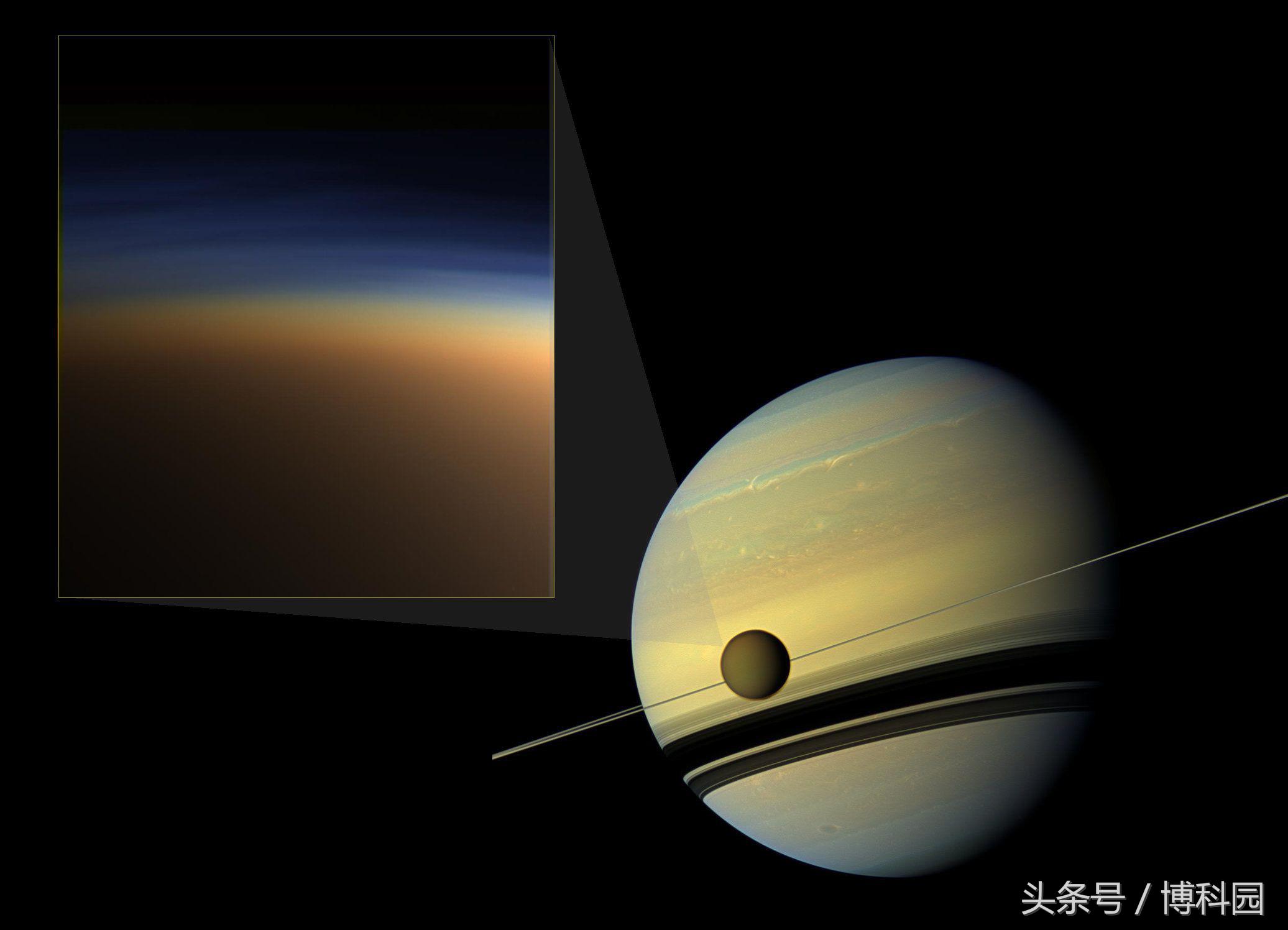 土卫六是土星最大的卫星(图中是土星的中段),在这张自然色的图片中可以看到土卫六大气中的薄雾。一项新的研究,涉及到伯克利实验室先进光源的实验,提供了新的线索,关于化学步骤可能产生这种烟雾。图片:NASA Jet Propulsion Laboratory, Space Science Institute, Caltech