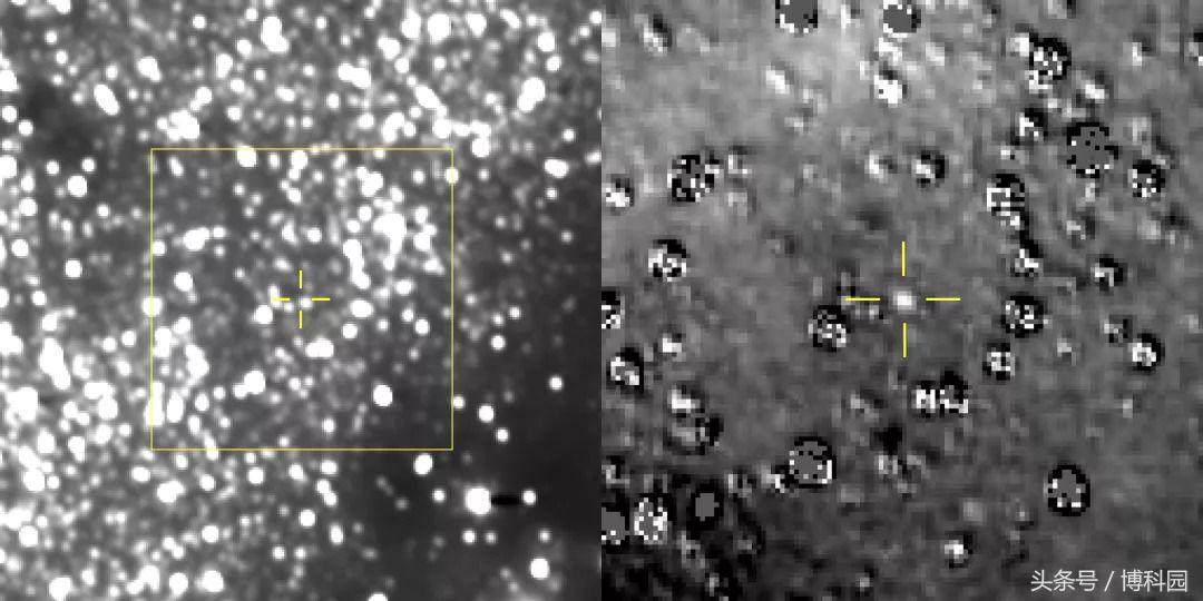 博科园–科学科普:美国国家航空航天局于8月28日公布的这些图像显示,在左边,物体的位置集中在十字准线上,在右边,同样的图像减去了恒星亮度。西南研究所行星科学家、新视野号的首席研究员艾伦·斯特恩(Alan Stern)在NASA的一份声明中说:我们现在看到的终极目标,比以前认为的要远得多,在最后门口,一个惊人的探索正在等待着我们!