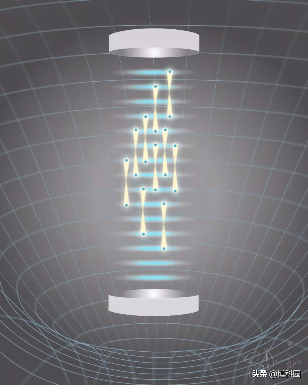 在这项新研究中,研究人员发现了一种测量重力的方法,这种方法根本不涉及投掷物体。新方法包括在一个小室中向空气中释放铯原子云,然后使用闪光灯将其中几个分裂为叠加态。一旦分裂,激光被用来将所有原子保持在固定的位置,每对中的一个略高于其配偶。然后,研究小组测量了每个原子的波粒二象性,这是受重力影响的。通过测量成对原子之间的二象性差异(因为它们与地球的距离不同),研究人员能够提出对重力的测量。