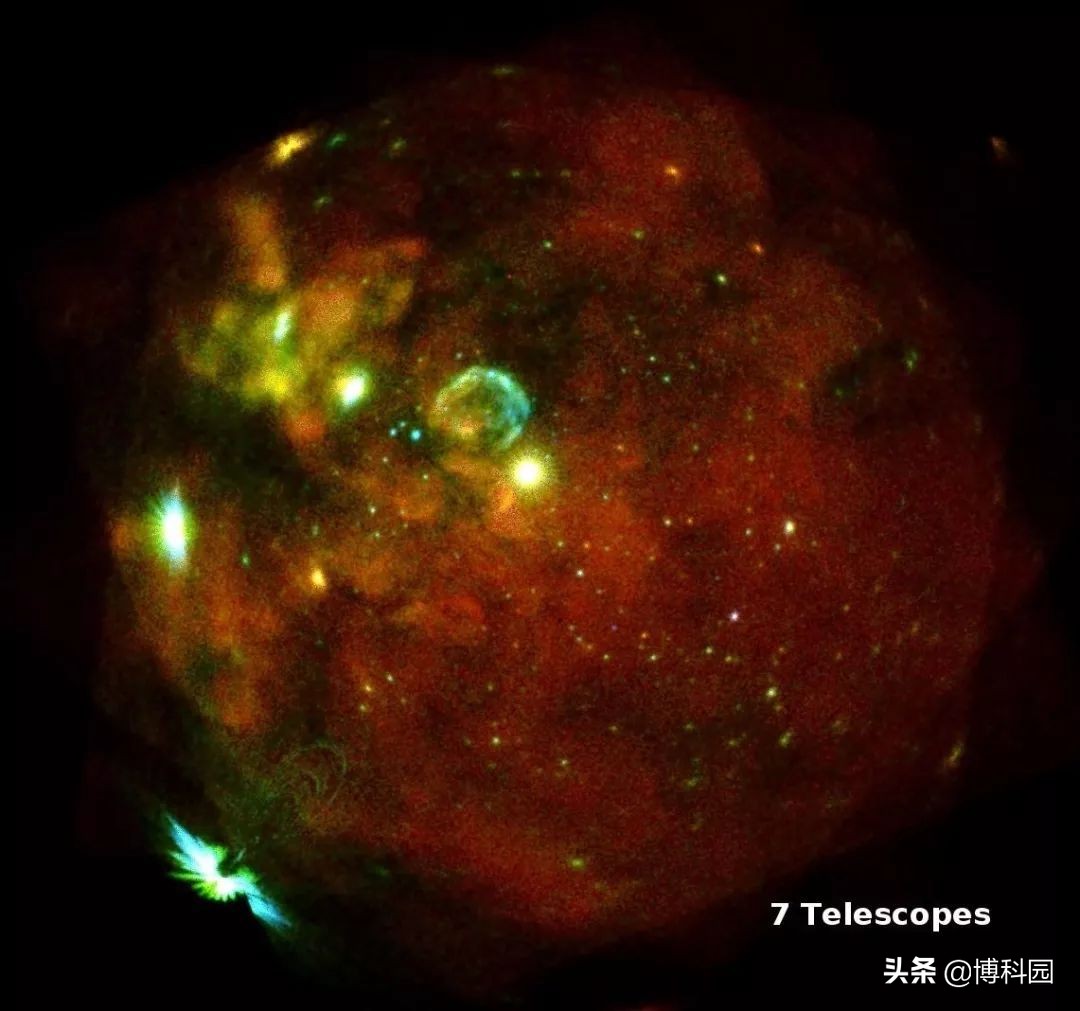 而且还显示了一些值得注意的细节,例如像SN1987A这样的超新星遗迹。eROSITA图像现在证实了这个来源正在变得越来越微弱,因为1987年恒星爆炸产生的冲击波通过星际介质传播。
